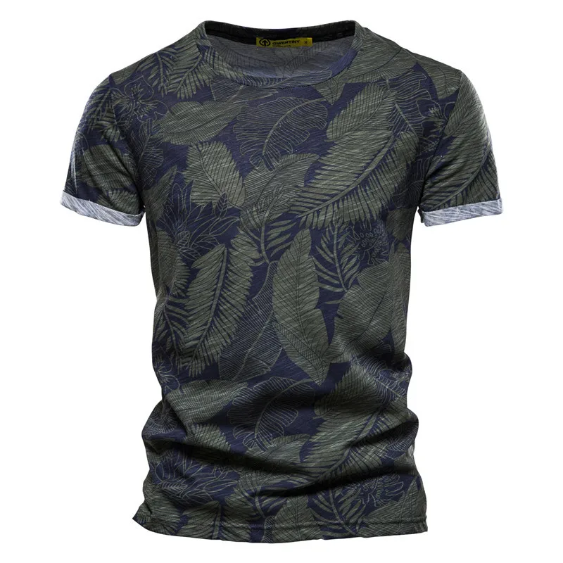 Футболка мужская с принтом листьев AIOPESON, из 2021 хлопка, с круг...
