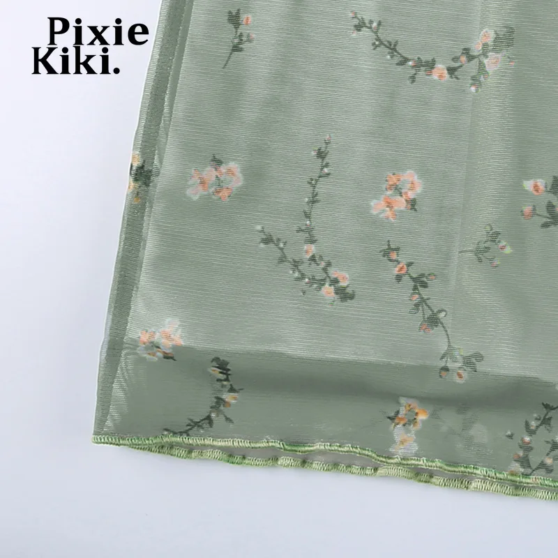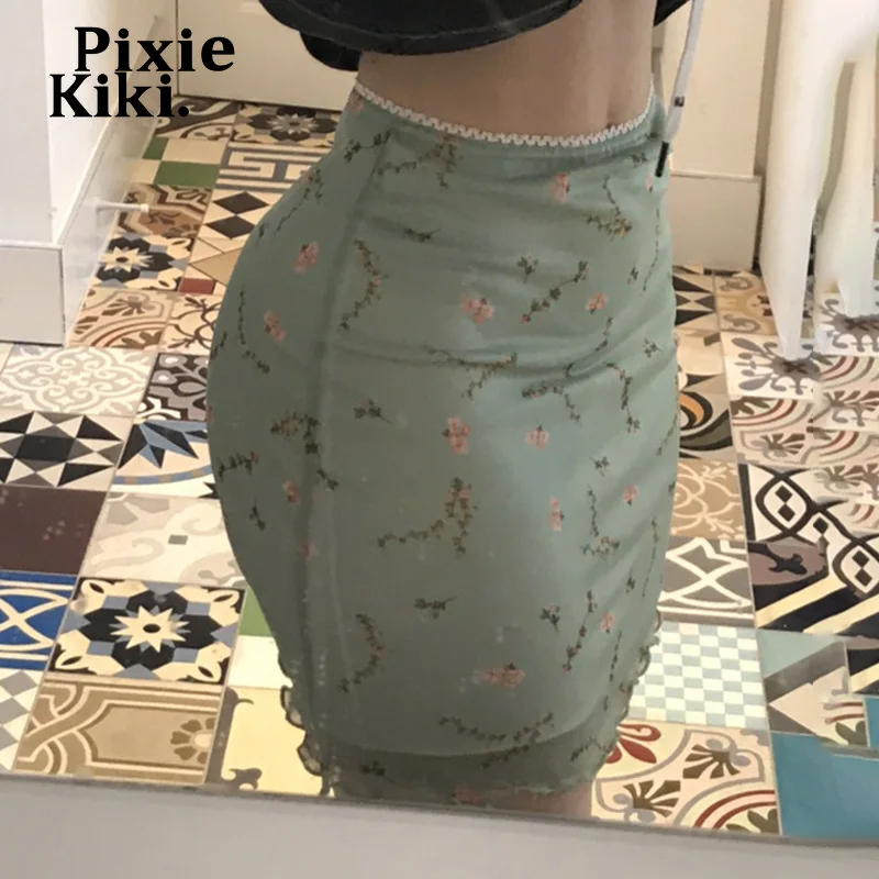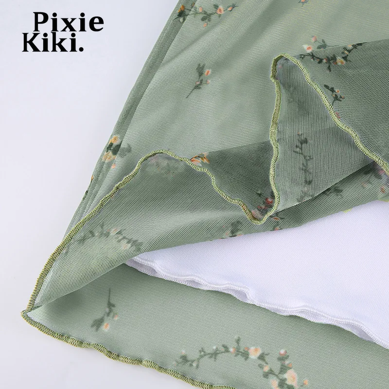 Зеленые сетчатые мини-юбки PixieKiki с цветочным принтом и высокой талией, одежда Y2k, волшебные гранж юбки, сексуальные летние юбки 2022