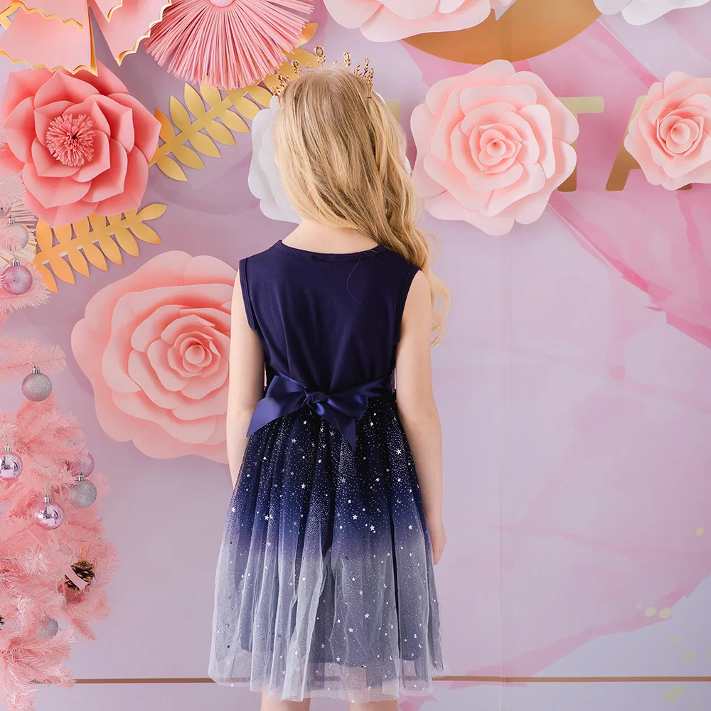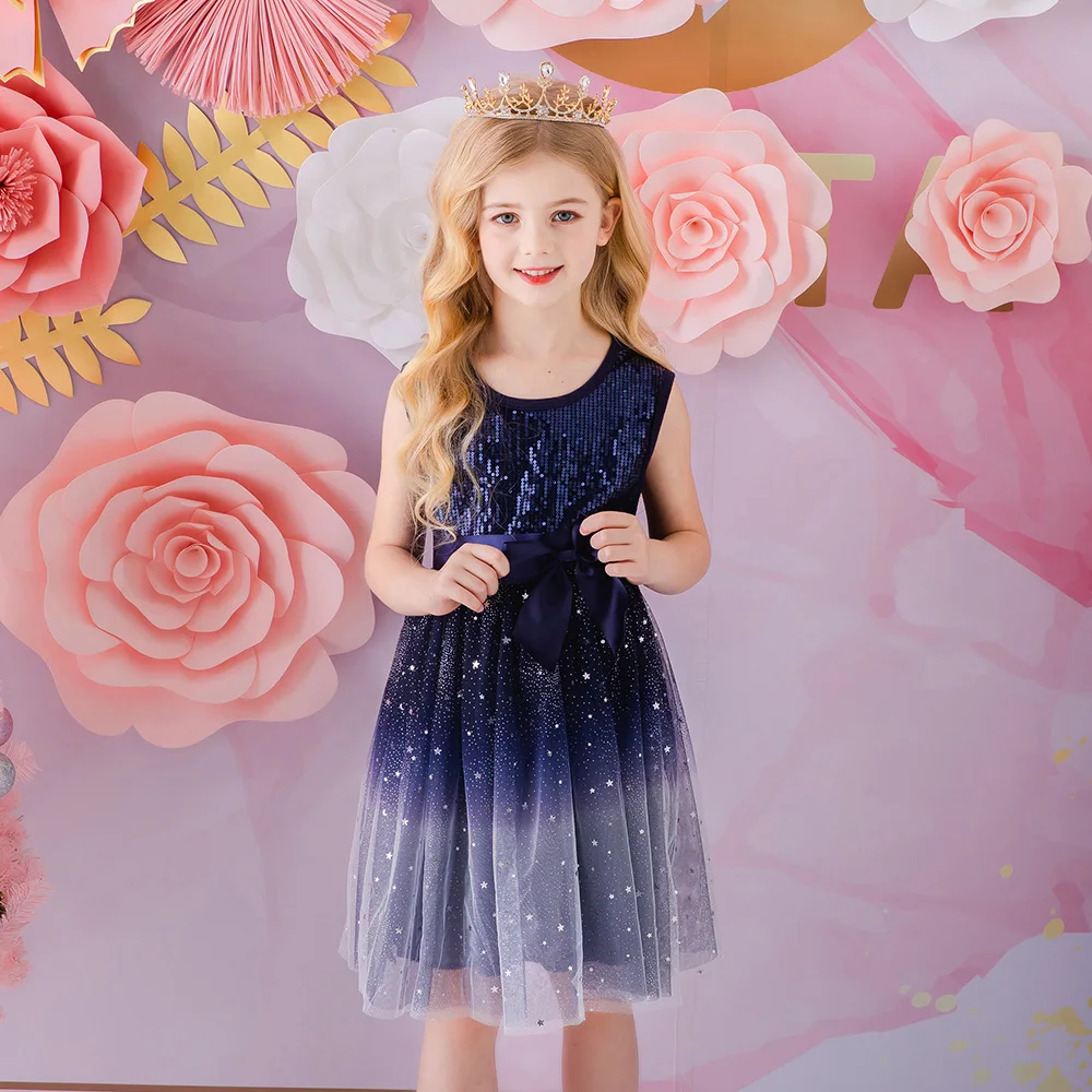 Платье для девочек, без рукавов, с блестками
