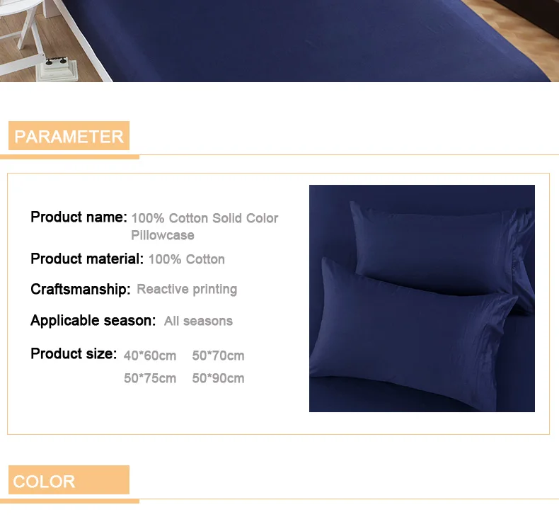 1 шт., 100% хлопок, однотонная наволочка 48*74 см, прямоугольная, р...