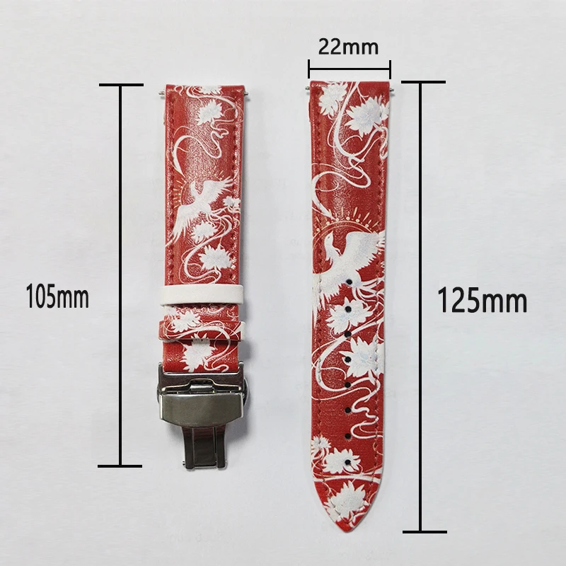 Абсолютно новый и высококачественный Стиль дизайна китайских элементов полон экзотического стиля и великолепной разницы в цвете. Умеренная мягкость, очень удобно носить Размер может регулироваться в зависимости от обстоятельств индивидуального запястья Пряжка: нержавеющая сталь 316L Материал: искусственная кожа Ширина ремешка: 22 мм Длина ремешка: 125 мм (длинный ремень); 105 мм (короткий ремень) Подходит для окружности запястья: 180 мм-230 мм В комплект входит: 1х силиконовый ремешок (не включая часы)