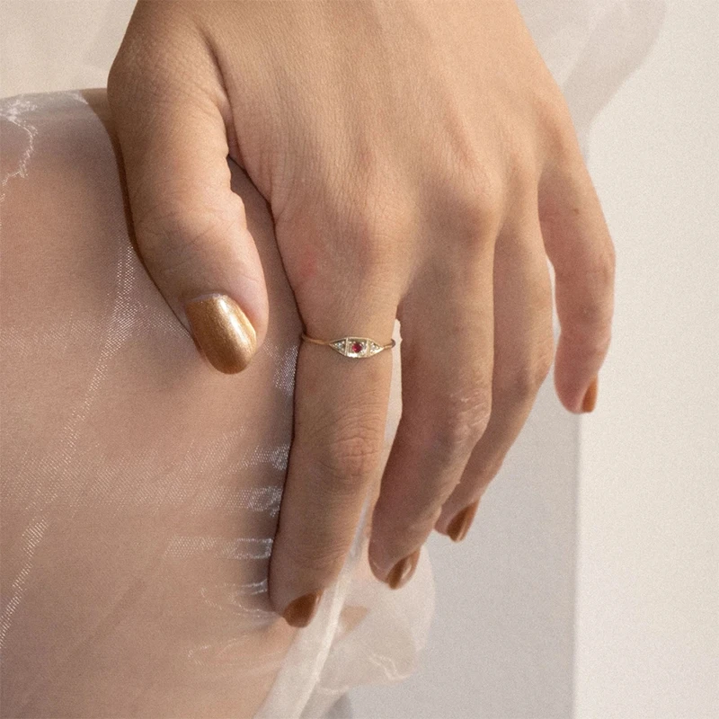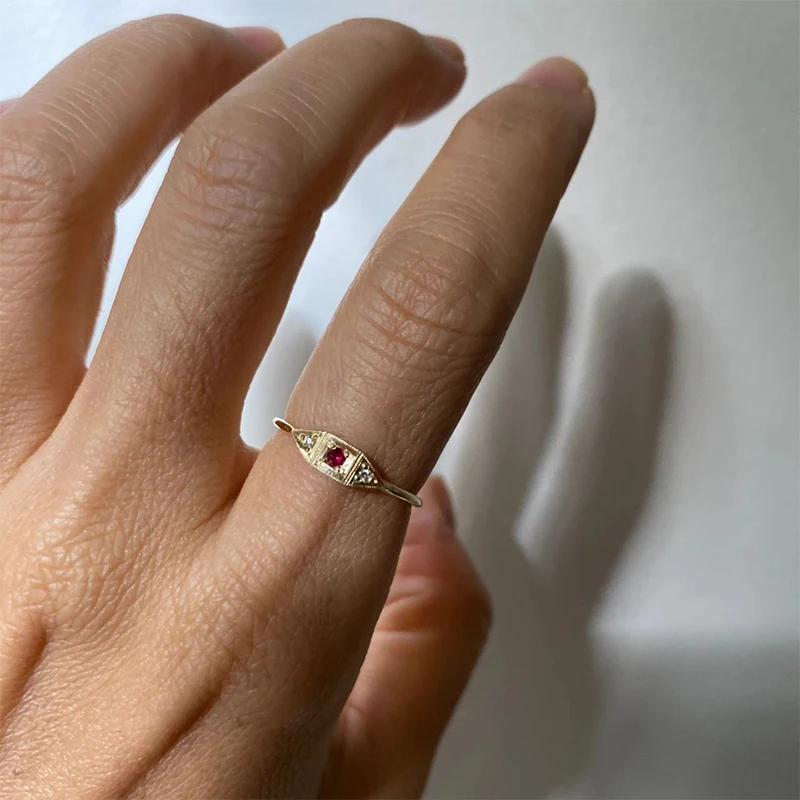 Minimalist Thin Circle Gem Rings Jewelry Carving S925