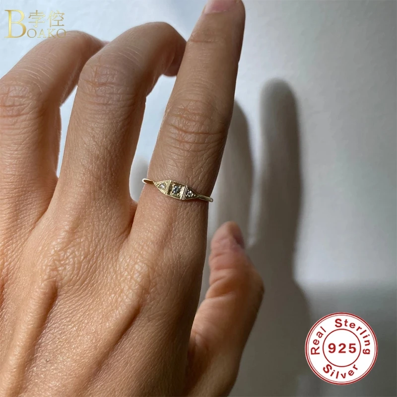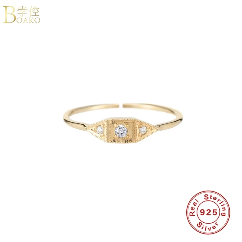 Женские открытые кольца BOAKO, простые свадебные кольца из стерлингового серебра 925 пробы с золотым кольцом, ювелирные украшения на палец, подарки для девушек