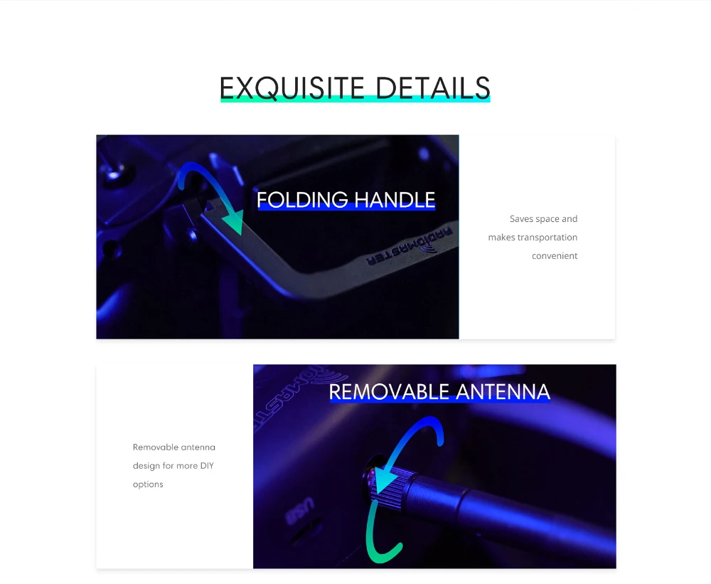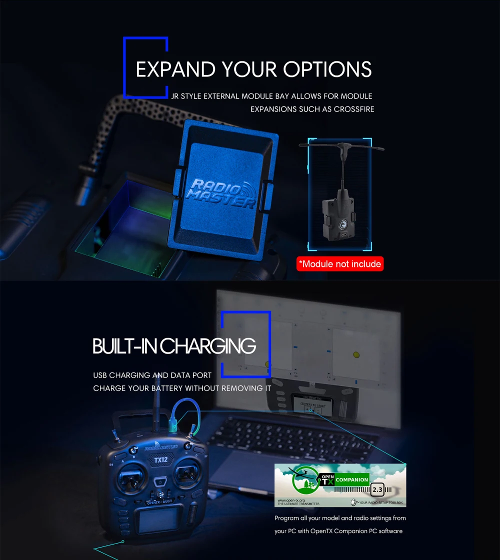 Радиоприемник Radiomaster самый компактный OPENTX совместимый, мини размер 170*159*108 мм.Совместим с прошивкой OpenTX и программным обеспечением companion PC.Встроенный чип CC2500RF.Встроенная голосовая поддержка.Съемный дизайн антенны для большего количества вариантов DIY.Металлический роллар для более активных действий и ощущений.Удобный размер и эргономика, подходит для «thumbers» и «pinchers».Улучшенный разъем модуля JR.Usb-порт для зарядки и передачи данных.Поддерживает Micro SD.
