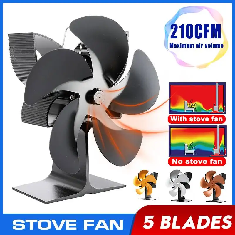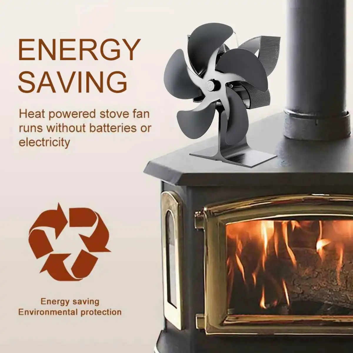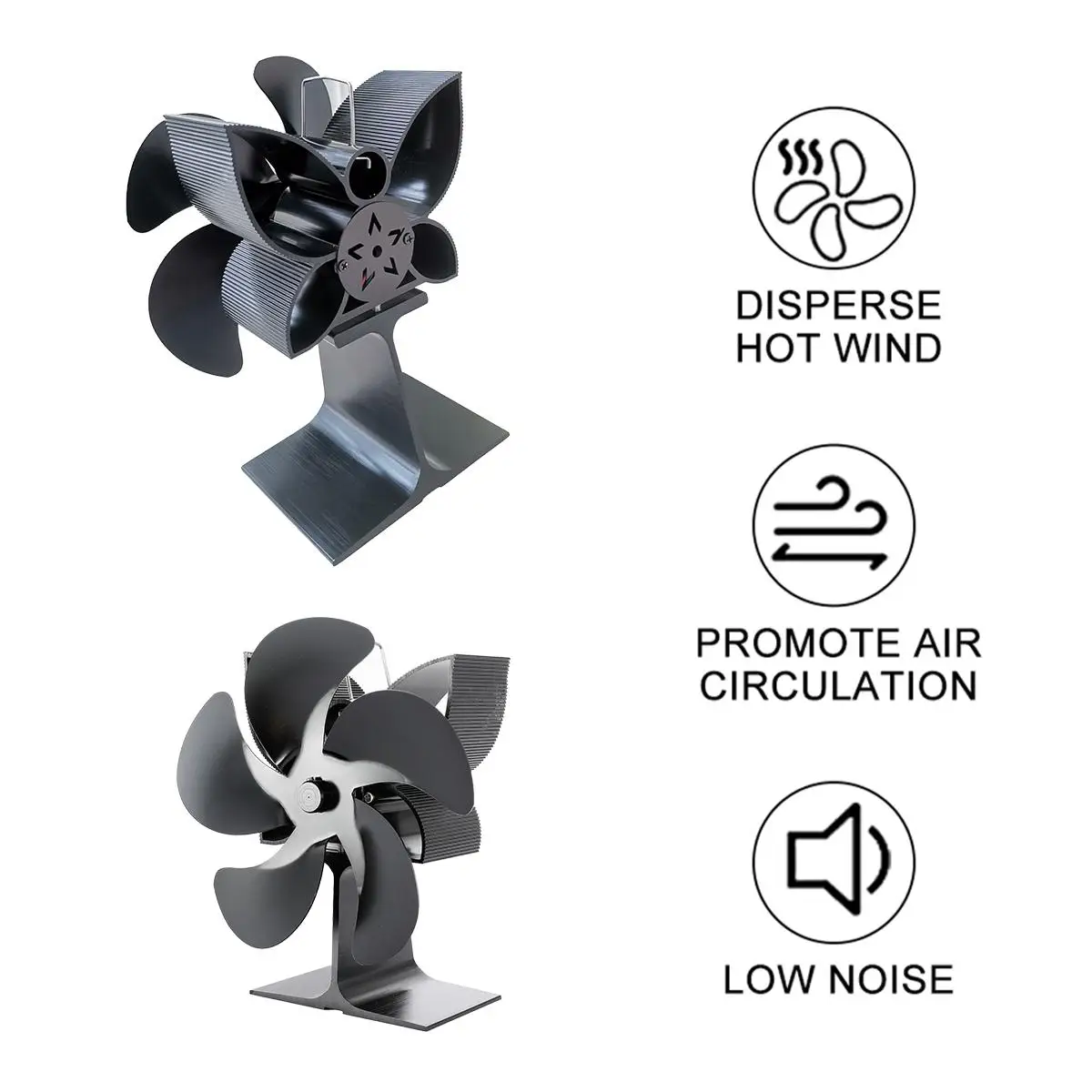 Черный камин 5 лезвий камин вентилятор для печи, работающий от тепловой энергии древесных бревен горелки Эко-дружественных тихий вентилятор для дома на зиму