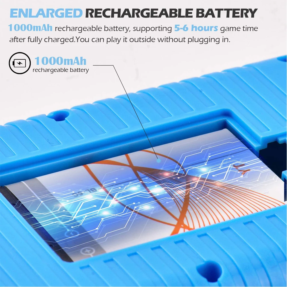 Эта портативная консоль поставляется с перезаряжаемой литиевой батареей 1000 мА · ч, более 7 часов работы от батареи. Когда вы находитесь в деловой поездке, путешествии, кемпинге, вам не придется беспокоиться о том, что у вас нет энергии.