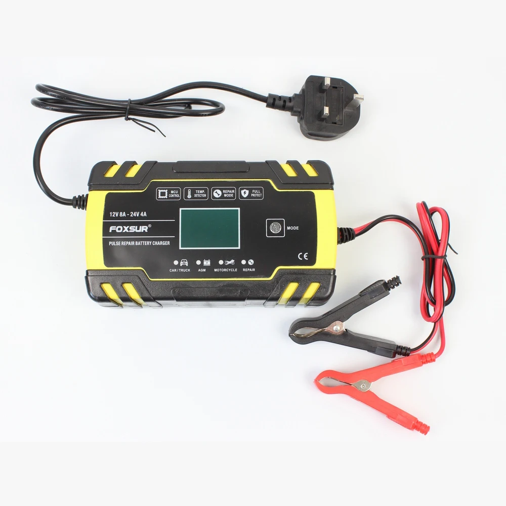 Зарядное устройство Foxsur, 1224 В, 8 А, с ЖК-дисплеем, автоматичес...