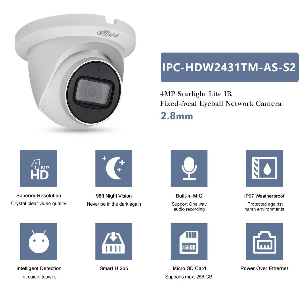 IP-камера видеонаблюдения Dahua, внутренняя камера 4 МП, POE H265 + Встроенный микрофон, наружная купольная мини-камера видеонаблюдения Starlight