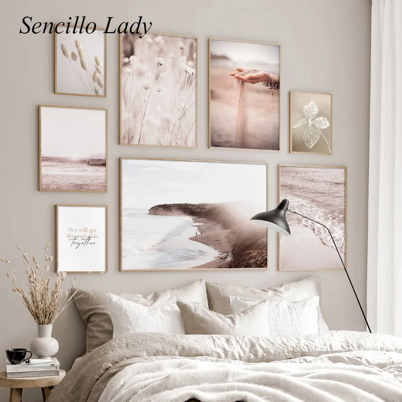 Богемное настенное искусство океан трава природный пейзаж плакат и печать ручной работы песок Холст Картина Бохо украшение картина домашний декор