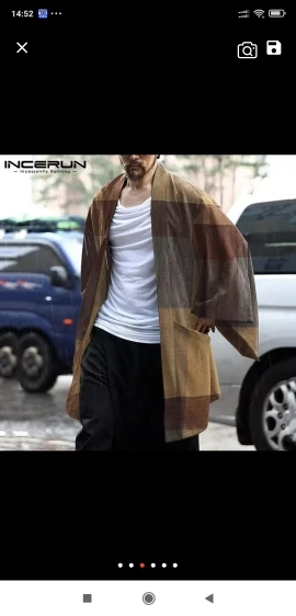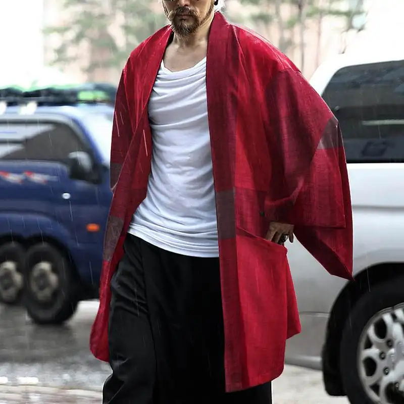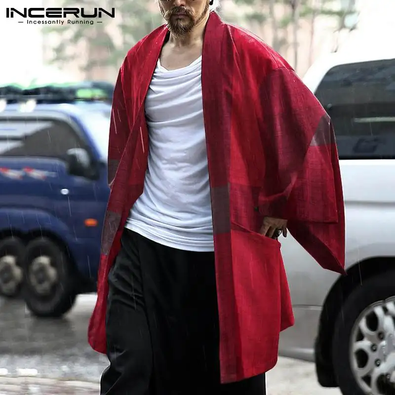 Рубашка INCERUN мужская с длинными рукавами, винтажный кардиган в клетку, свободное кимоно с карманами, уличная одежда, S-5XL, весна