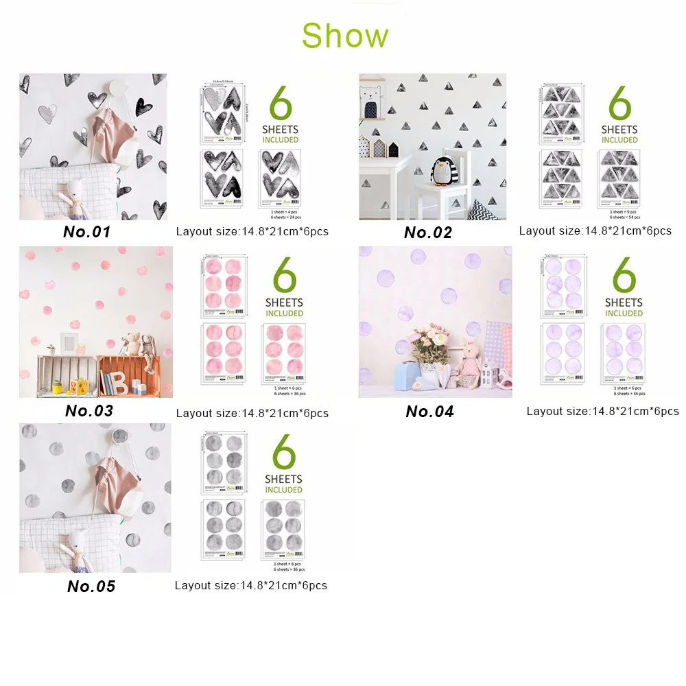 36 шт.компл. настенные наклейки в горошек с акварелью для детских к...