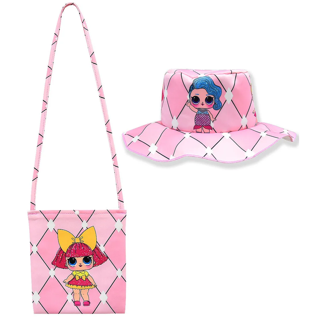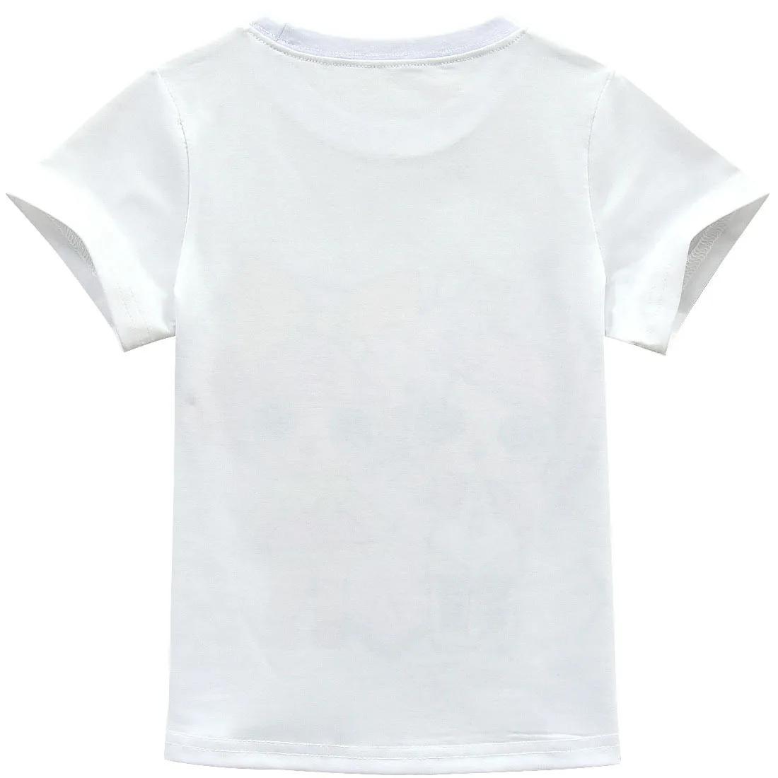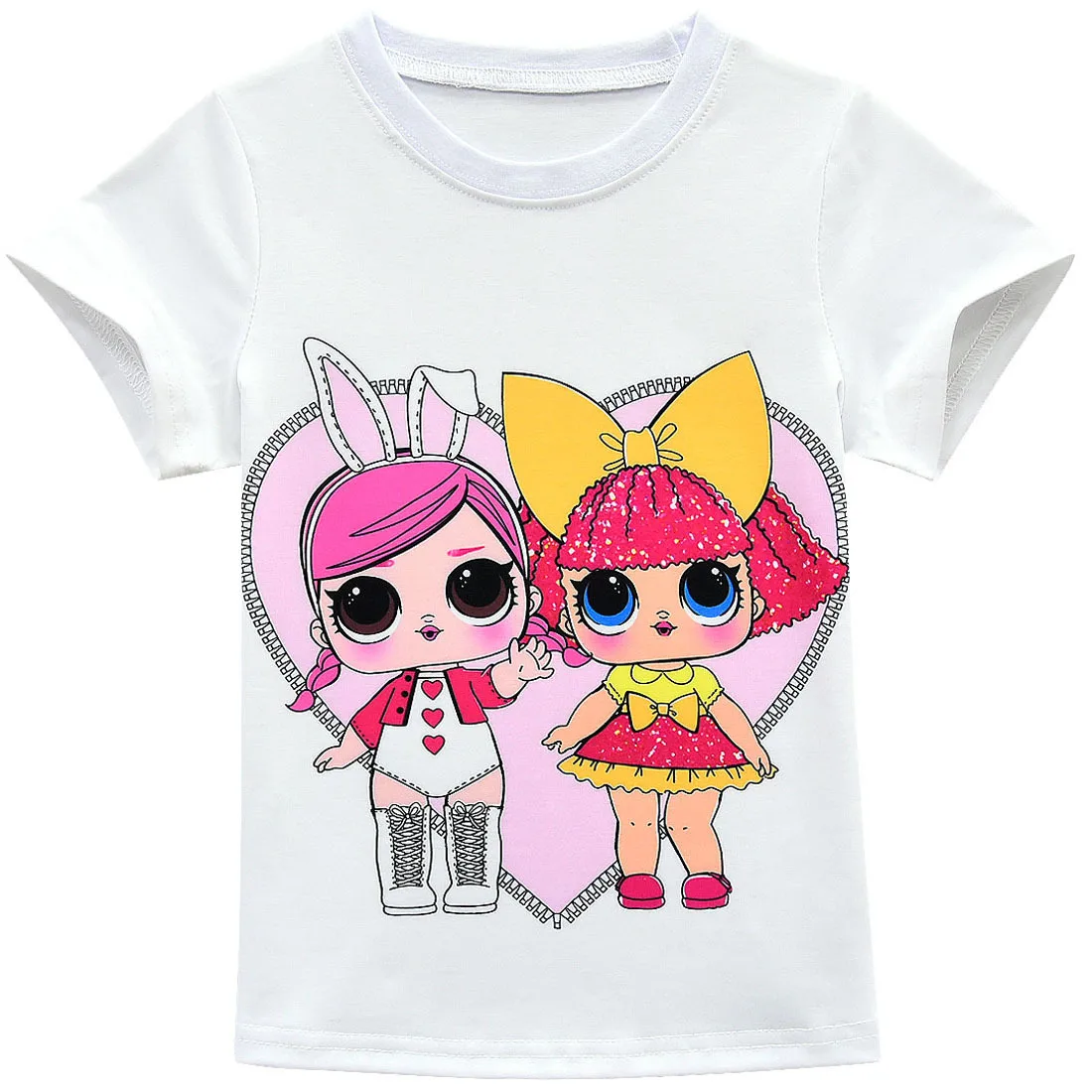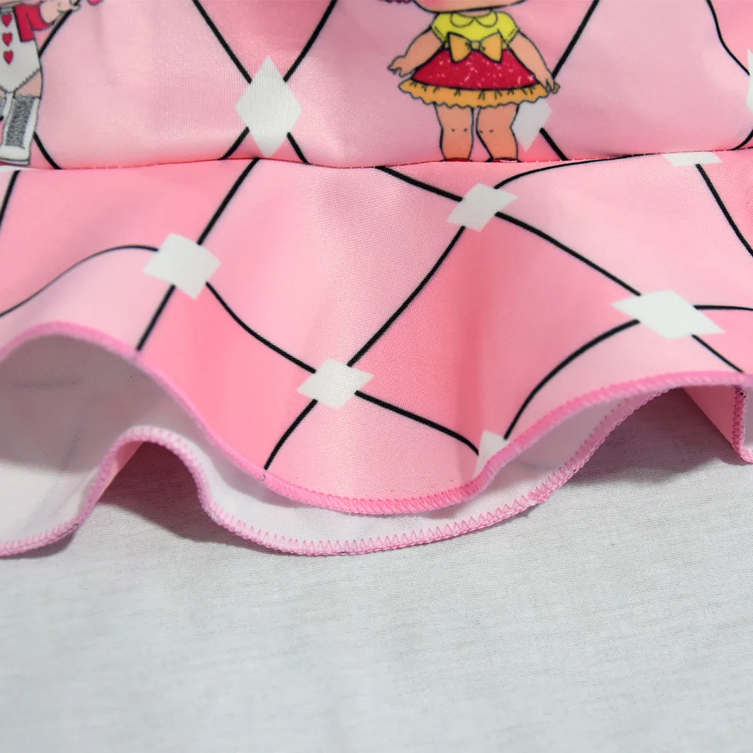 Комплект одежды для маленьких девочек, 4 предмета, топ с коротким рукавом + юбка + шапка, наряды, одежда с куклой и мультяшным принтом для девочек