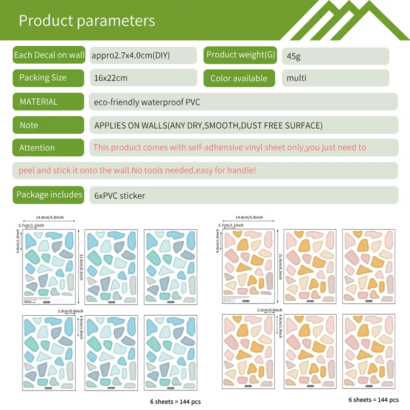 144 шт., креативные цветные камни, виниловые наклейки сделай сам 5 видов для гостиной, спальни, моральные пятницы, декоративный домашний декор, подарок для детей
