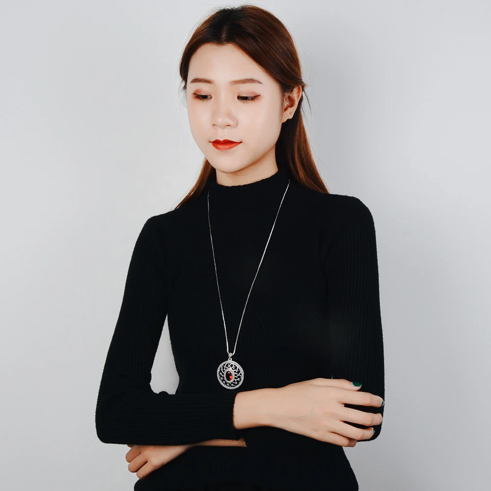 Ожерелье с красной подвеской для женщин, корейская мода, Ювелирное Украшение для шеи, трендовая цепочка для свитера, ожерелье, подарок на день рождения H, 2021