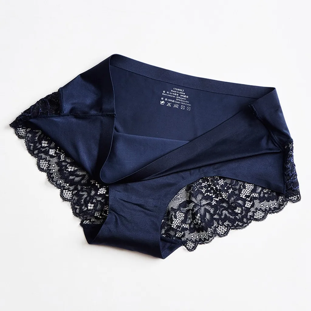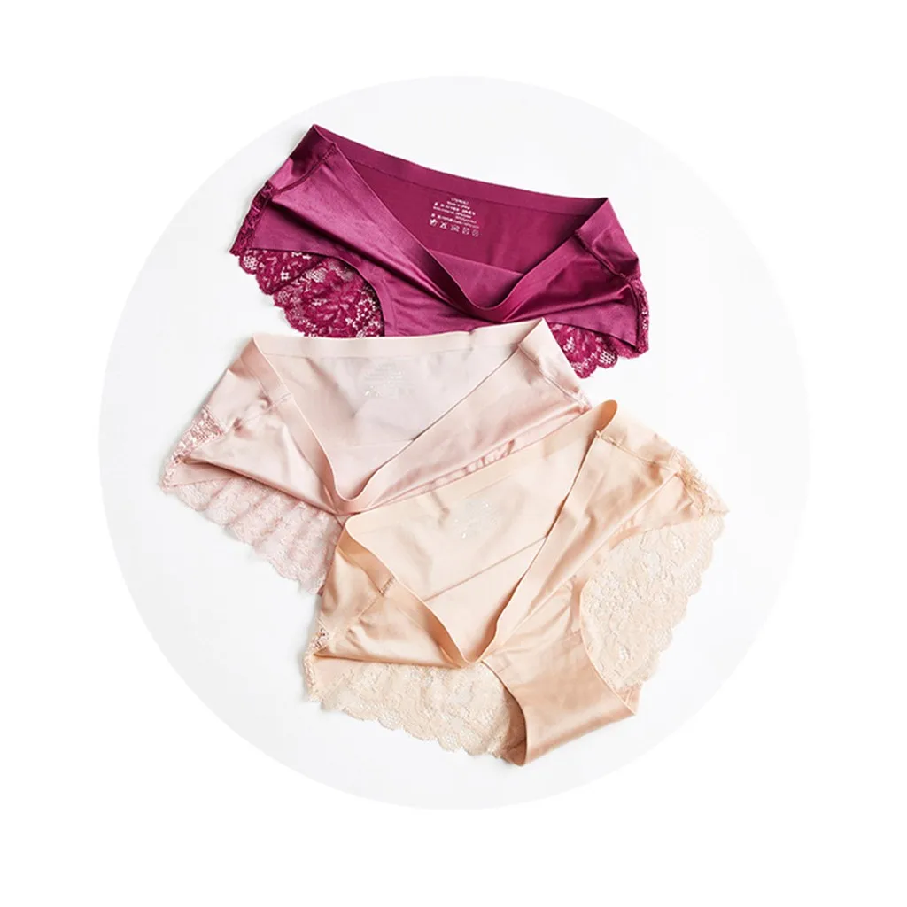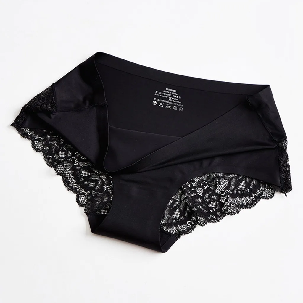 Трусы женские, однотонные, бесшовные, с низкой посадкой, с кружевом по бокам