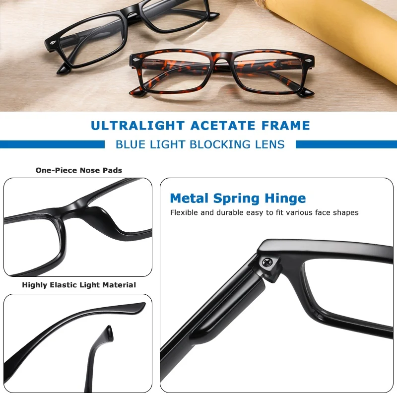 Очки для чтения CRIXALIS для мужчин и женщин, винтажные прямоугольные аксессуары для работы за компьютером, для дальнозоркости, UV400 + 2022-+ 1,00, светильник, 4,00