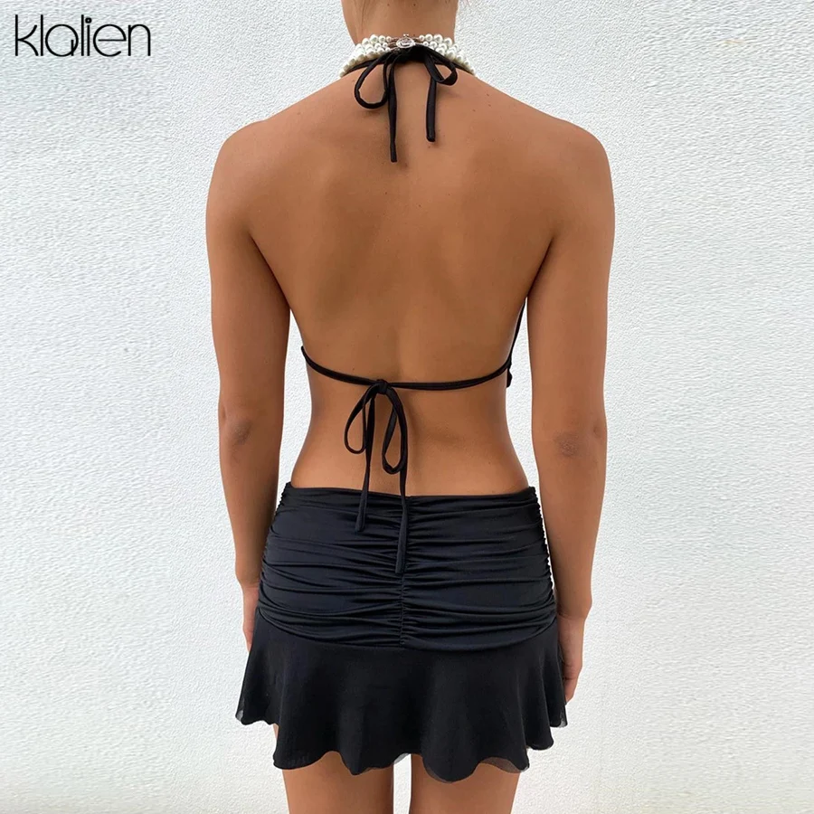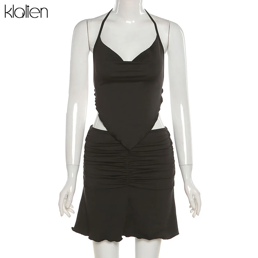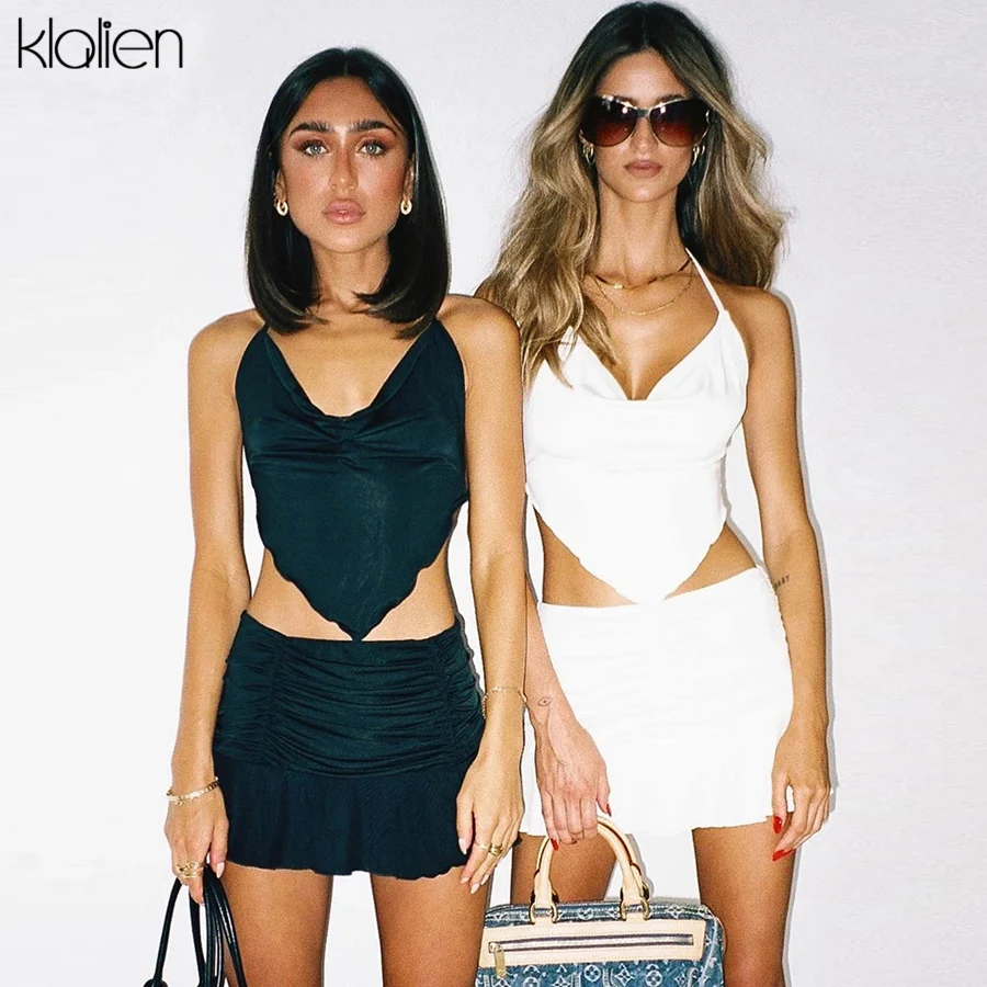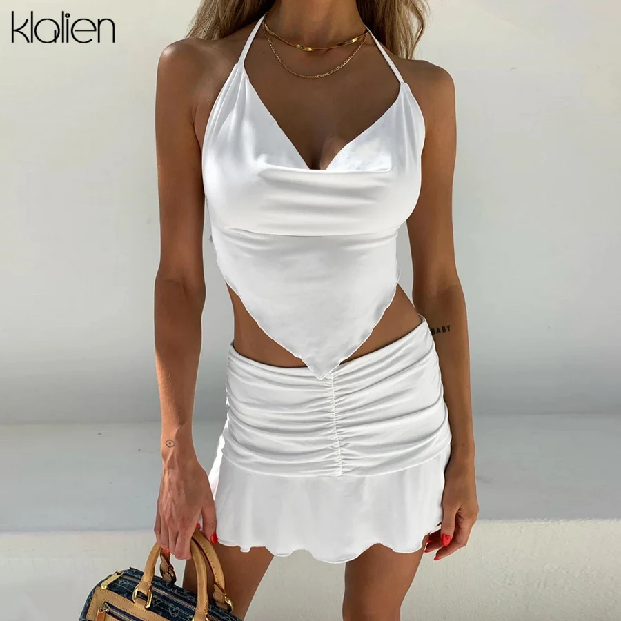 Женский костюм с юбкой KLALIEN, облегающий костюм из двух предметов, с V-образным вырезом и открытой спиной, эластичная пляжная юбка для отпуска, на лето