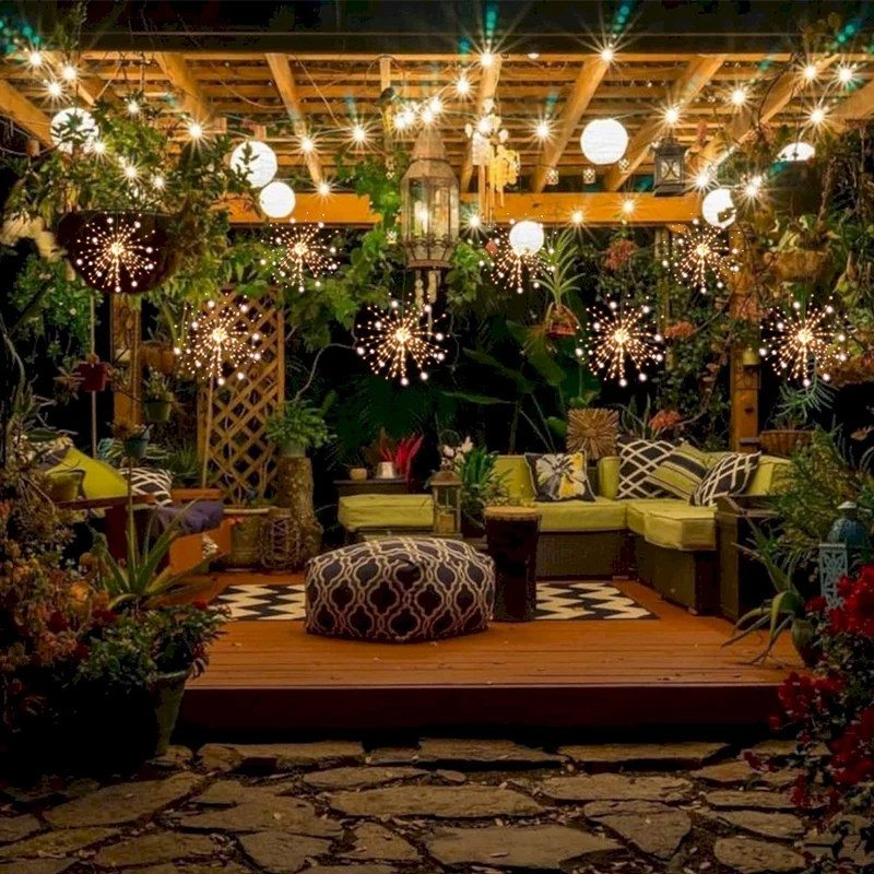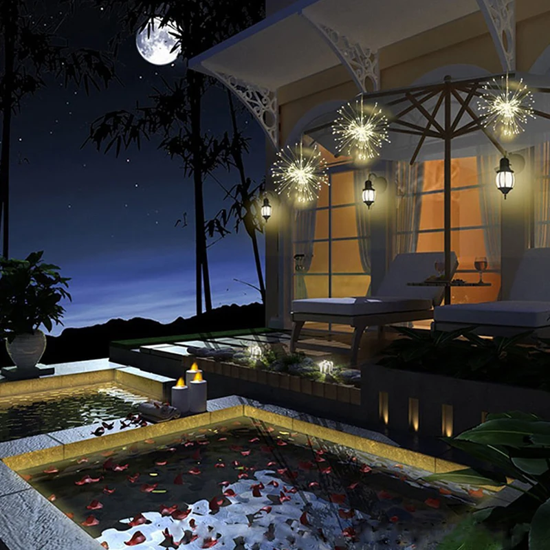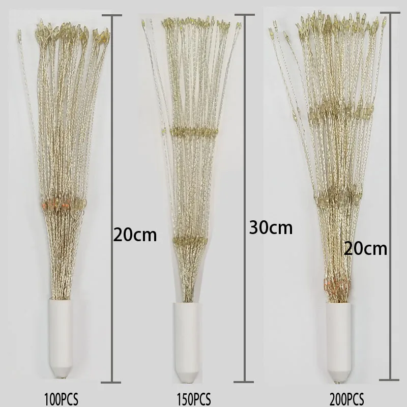 Праздничный подвесной светильник Starburst 100-200 светодиодов DIY фейерверк медная гирлянда Рождественский светильник s наружный мерцающий светильник Описание товара: Наименование товара: светодиодный светильник для фейерверков Светильник: теплый белый, смешанный цвет Материал: Серебряный провод + светодиодный фонарь + пластиковая Батарейная коробка 8 режимов: 1) Комбинация; 2) в волнах; 3) двойной светильник для скачек; 4) одноступенчатый светильник; 5) мигающие изменения; 6) Двойные огни тусклые и темные одновременно; 7) вспышка; 8) все огни включены. Примечание: пульт дистанционного управления и батарейный блок не содержат батарей. Спецификация: 1.100LED имеет 50 шт. светильник, одиночный светильник имеет 2 светодиодных лампы, общая длина 20 см. 2.150LED имеет 50 шт. светильник, одиночный светильник имеет 3 светодиодных лампы, общая длина 30 см. 3.200LED имеет 50 шт. светильник, одиночный светильник с 4 светодиодными лампами, общая длина 20 см.; 4. Пульт дистанционного управления: каждый светильник фейерверка поставляется с ИК-пультом дистанционного управления, Пульт дистанционного управления питается от 1 батареи CR2032 (не входят в комплект). 5. Водонепроницаемый: питание от 4 батареек AA (не входят в комплект), IP65 Водонепроницаемый. 6. Использование: можно использовать дома, в баре, ресторане, супермаркете, вечерние, праздничные и декоративные.