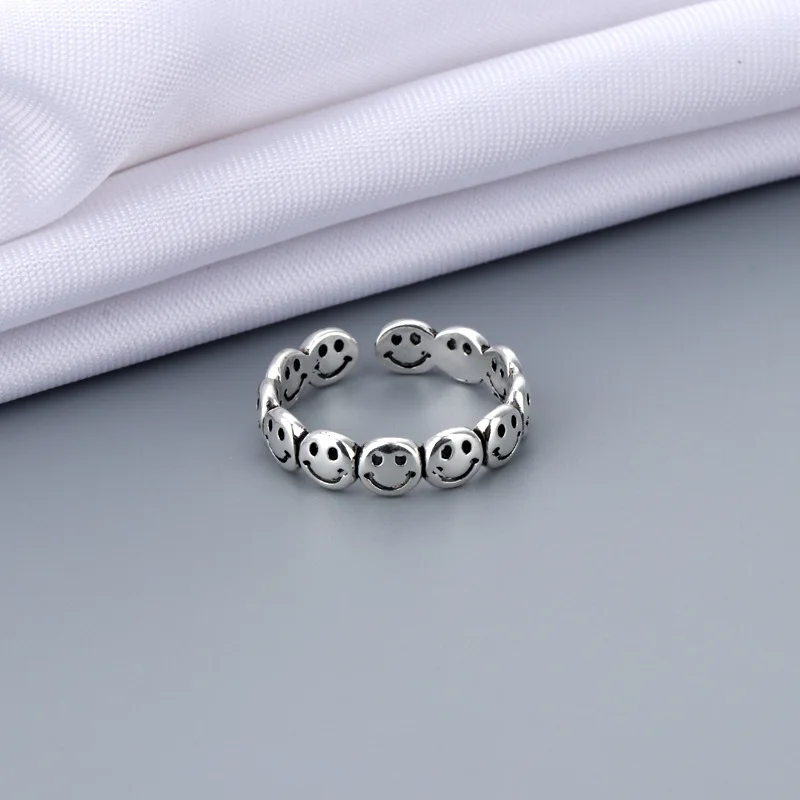 Кольцо Foydjew с улыбающимся лицом для мужчин и женщин, покрытое серебром 2022 пробы, модное ретро кольцо-улыбка в стиле хип-хоп,