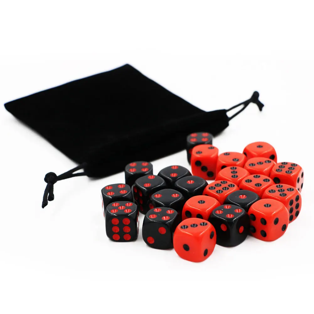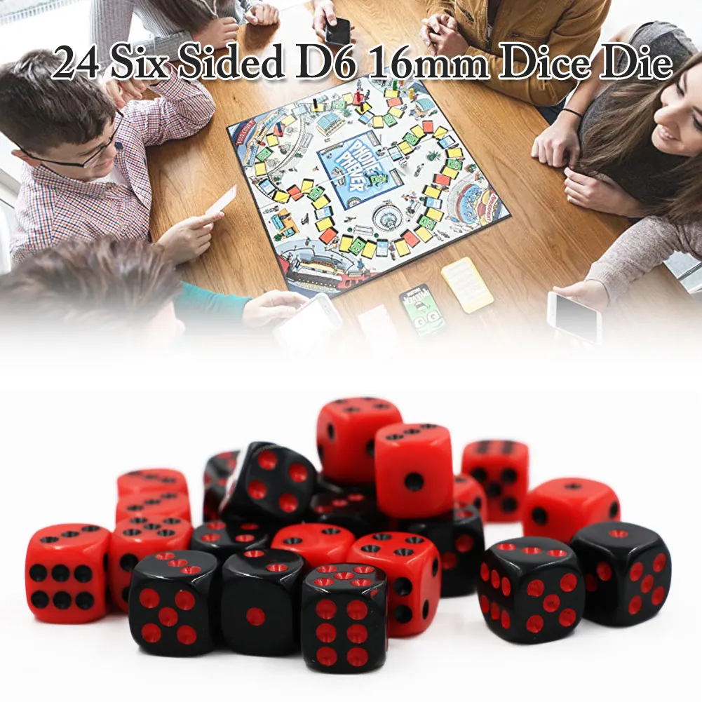24 шт.компл. красныйчерный 16 мм набор Игральный костей Твердые Акр...