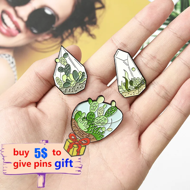 Эмалированные булавки в горшке для одежды, броши с растениями на заказ с террариумом, КАКТУСОМ, алоэ, значок с зеленым растением для сумки, искусственный подарок для друзей