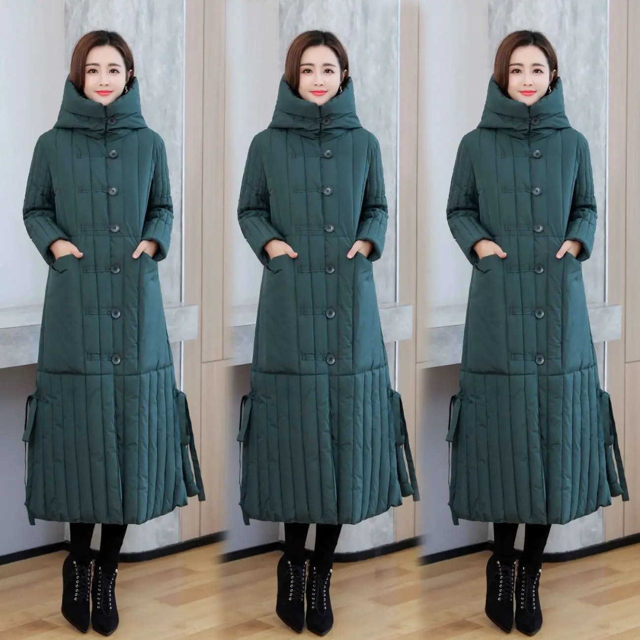 Женская парка с капюшоном, длинная, ветрозащитная, однотонная, зимняя, 2021
