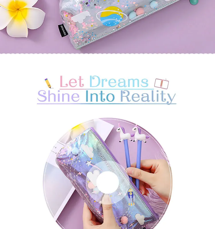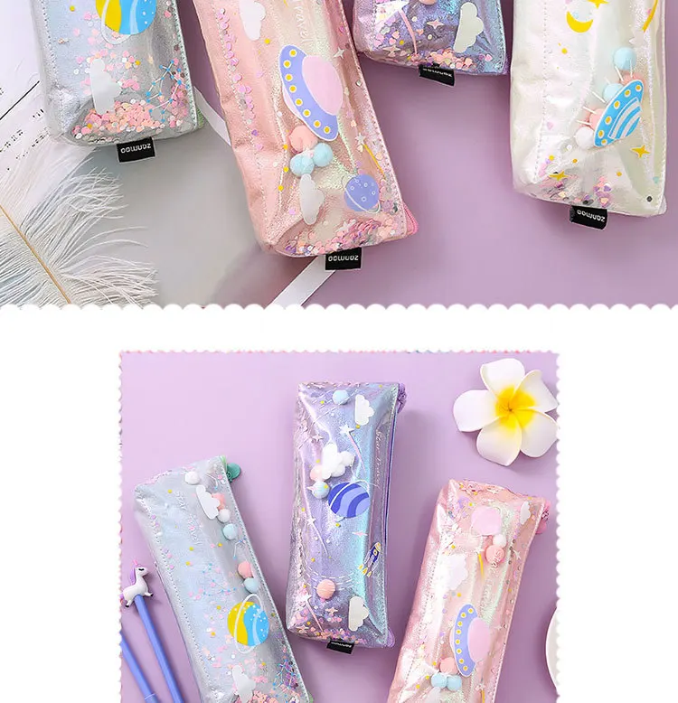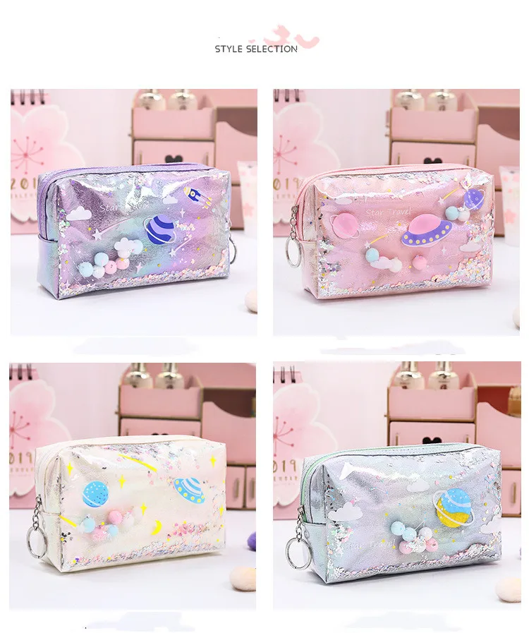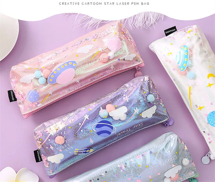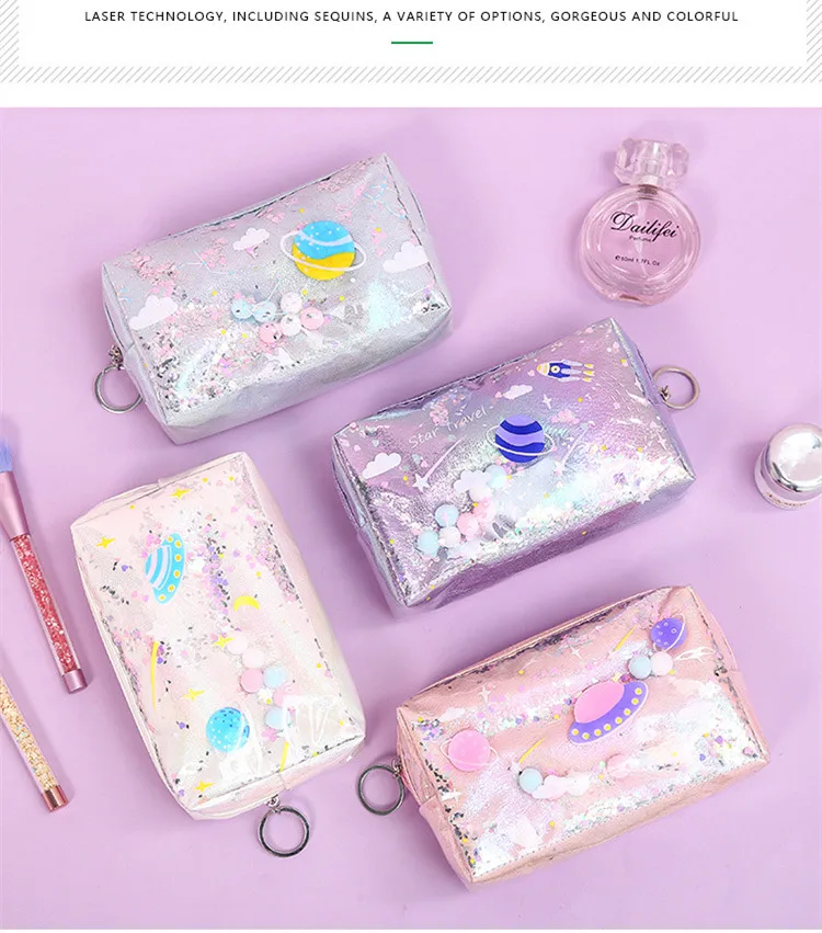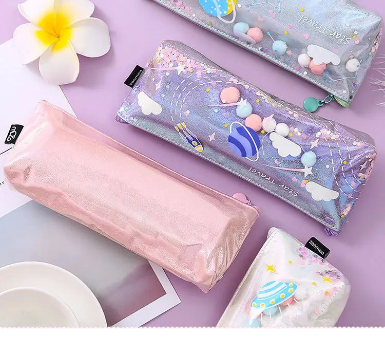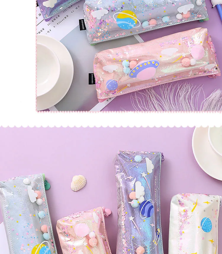 Чехол для ручек и карандашей с планетой лазер, большой школьный чехол для девочек, Подарочная сумка для хранения косметики и карандашей для студентов