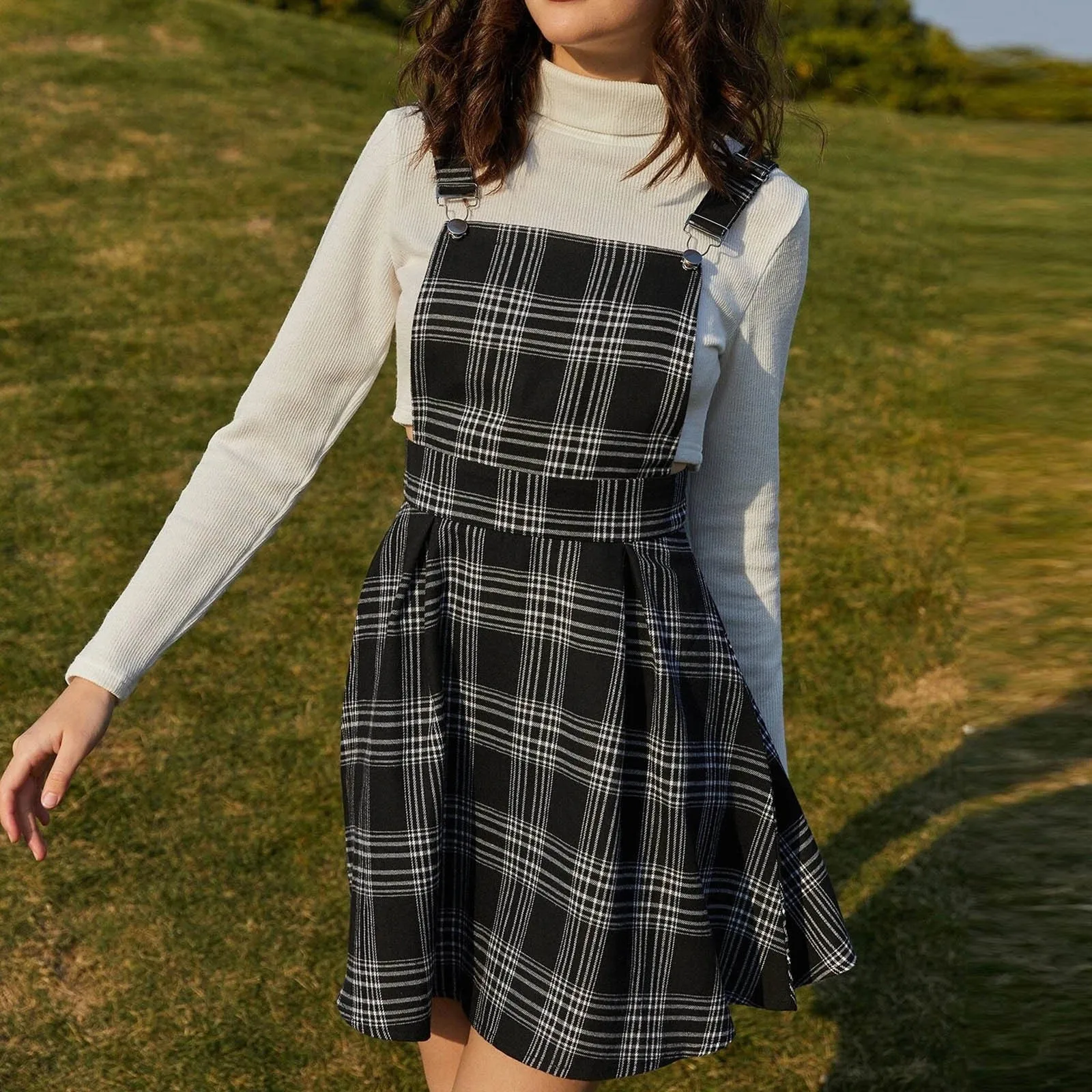 Женское клетчатое платье с открытыми плечами, модное платье-трапеция в стиле Харадзюку, милое Повседневное платье на бретелях, Vestidos De Verano # T2G