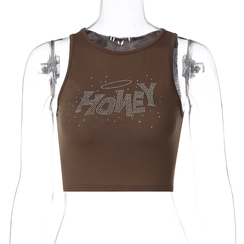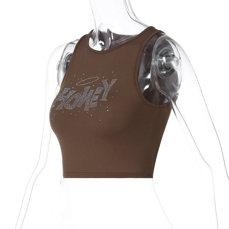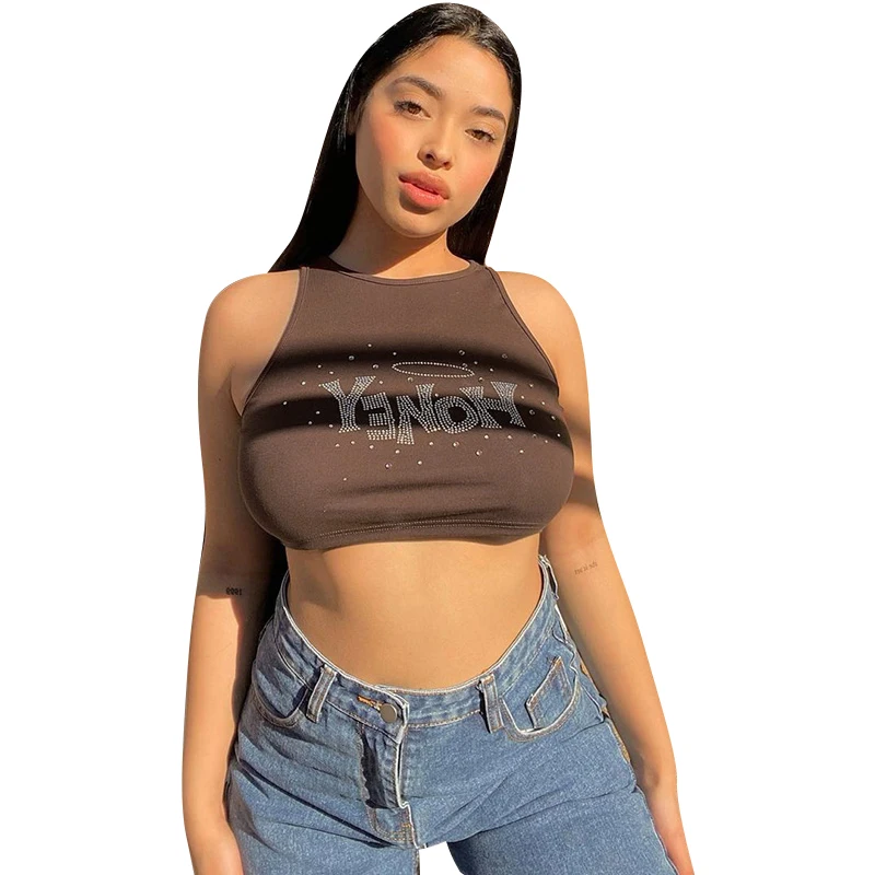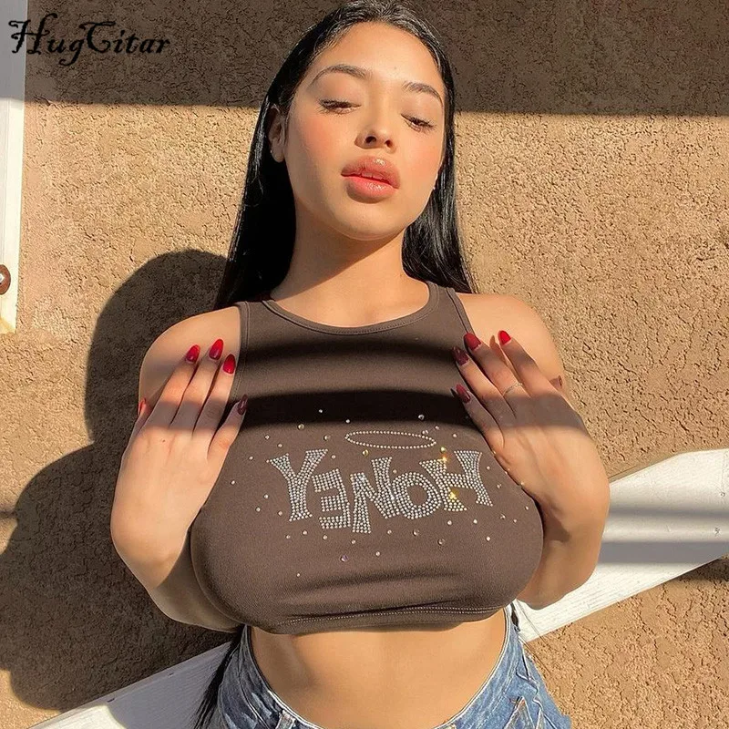 Hugcitar 2021, расшитый блестками, с буквенным принтом, без рукавов, Canale, сексуальный укороченный топ, летняя женская мода, уличная одежда, облегающие футболки Y2K