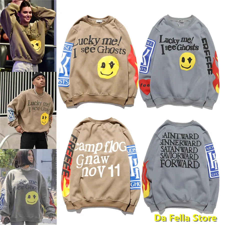Kanye West Толстовка 20SS Для мужчин Для женщин Для мужчин повезло мне толстовки с принтом призрака сатаны Спасителя прихода логотип; Стиль Ким Кардашьян кофты Малыш см призрак