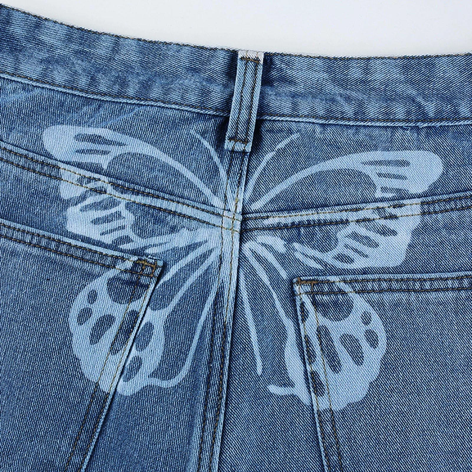 Новинка 2022, летние винтажные джинсы, женские длинные брюки, ковбойская Женская свободная уличная одежда, прямые брюки с принтом бабочки # T3G