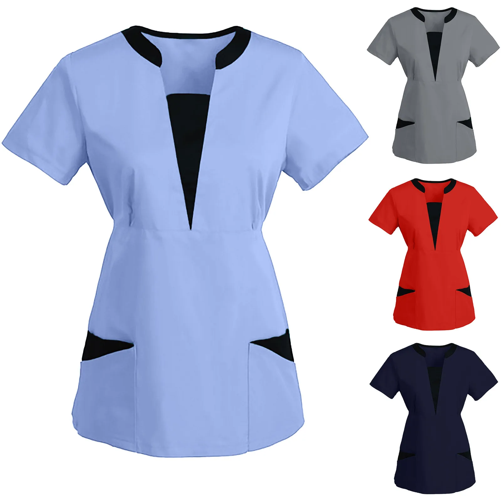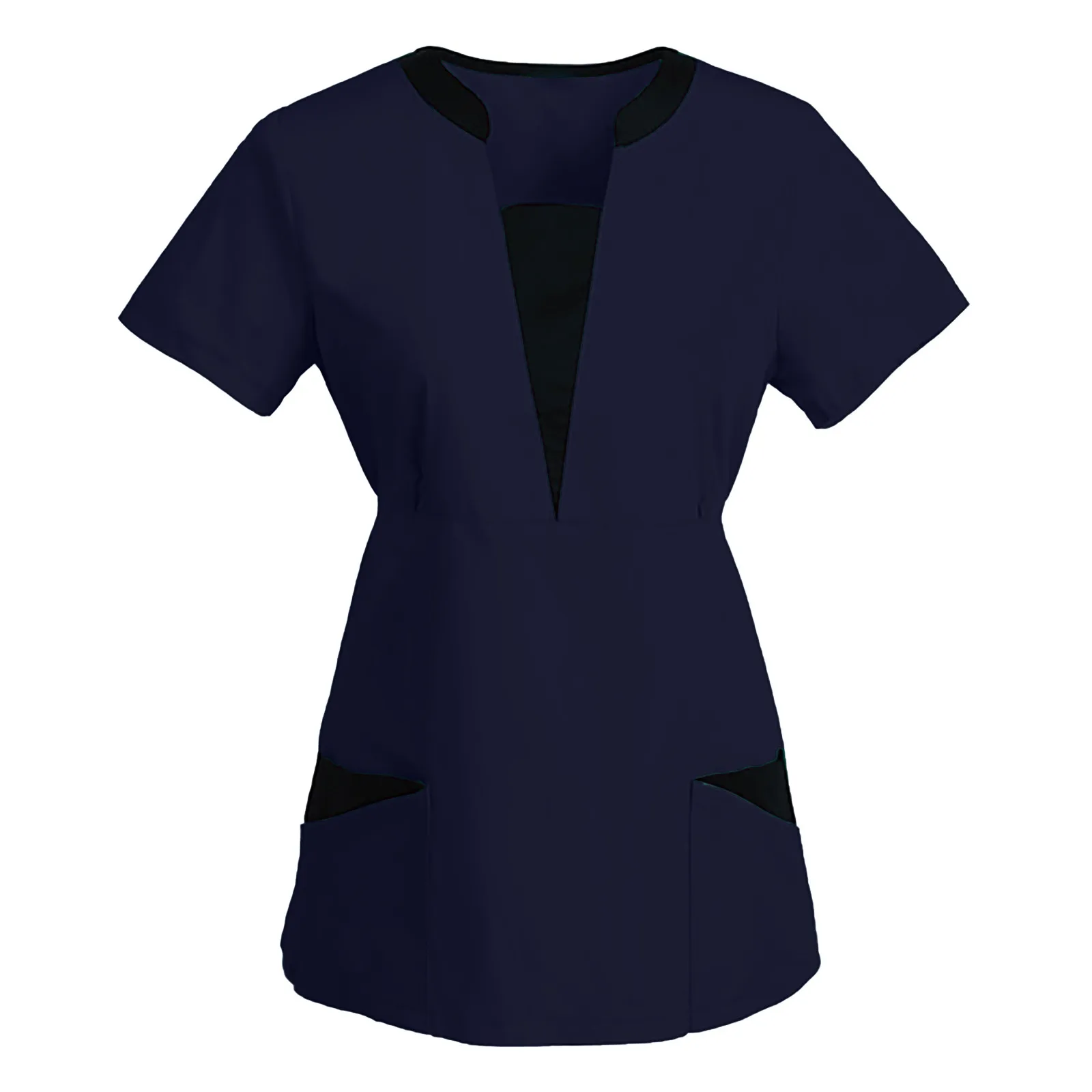 Женский топ с коротким рукавом, V-образным вырезом и карманами