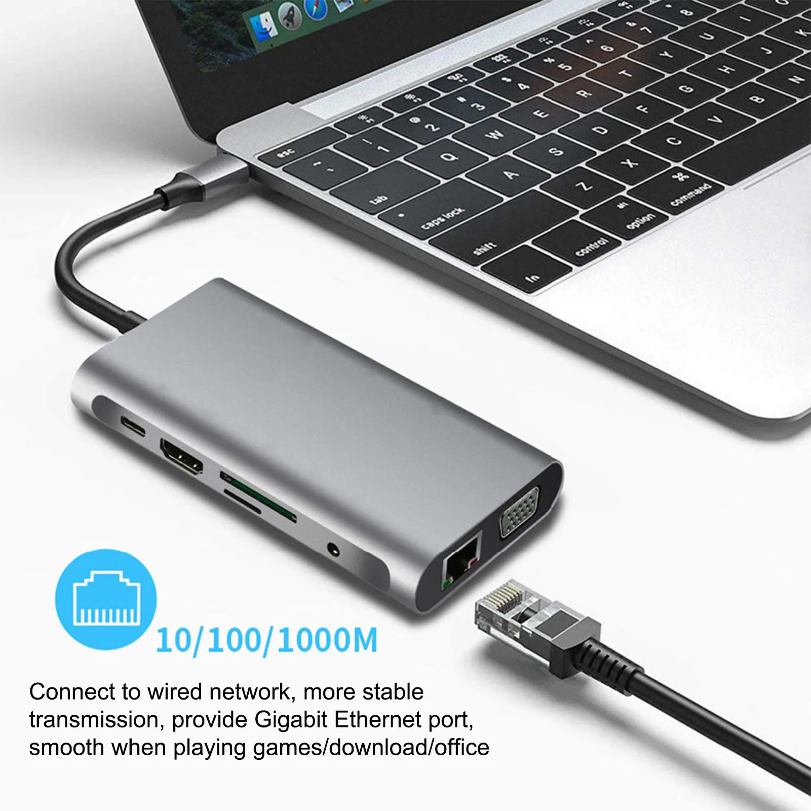 USB 3,0 многопортовый концентратор адаптер 10 в 1 Тип C HDMI-совместимый VGA PD usb-хаб Прямая поставка оптовая продажа