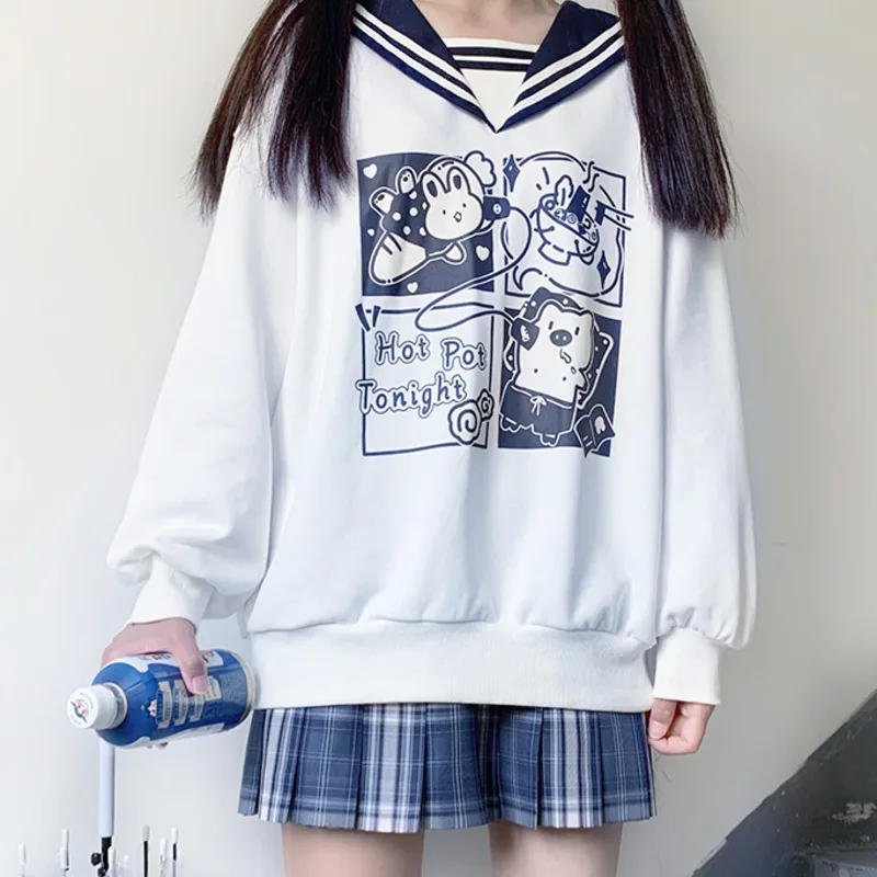 Толстовка женская с капюшоном, милый свитшот в стиле преппи В Стиле Лолита, свитшот с графическим изображением свиньи, кролика, кофта с матросским воротником для девочек-подростков, весна-осень