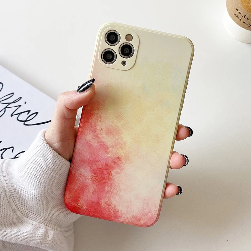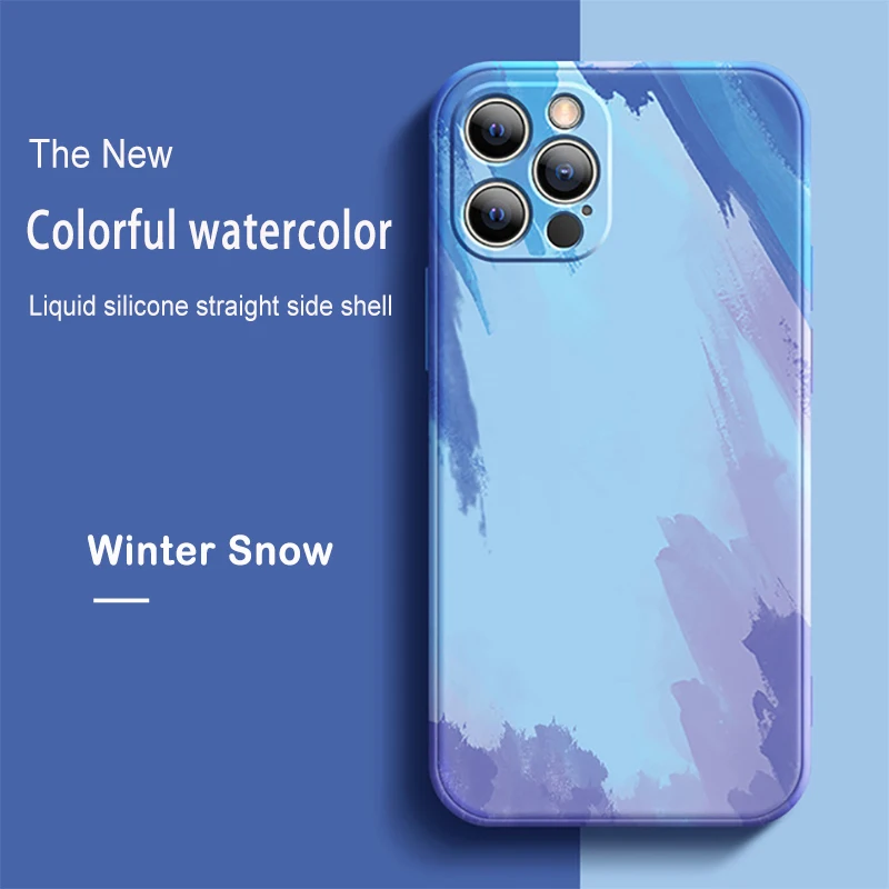 Акварельный чехол из жидкого силикона для телефона iPhone 11 12 Pro Max X XR XS Max 12 Mini 7 8 Plus SE 2020, защитный чехол с прямыми краями