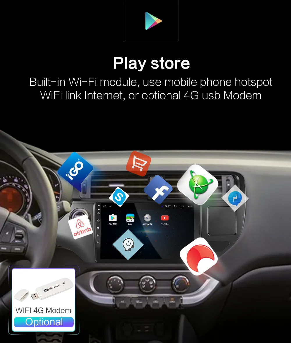 Для Kia RIO K3 2011 2012 2013 2014 20151, 4-х ядерный конфигурация включает в себя (Оперативная память + Встроенная память): 1 Гб + 16 ГБ/2 ГБ + 16 ГБ/2G + 32G / 4G-SIM-3560-2G + 32G [дополнительно];2, 8-ядерный конфигурация включает в себя (Оперативная память + Встроенная память): 7260L-2G + 32G / 7260L-4G + 64G / 4G-SIM-5760-2G + 32G / 4G-SIM-5760-4G + 64G / 4G-SIM-TS10-4G + 64G/4g-sim-ts6g на выбор + 1283, 4-х ядерный содержит: версия: Android 8,1;Четырехъядерный процессор MTK8227 / Cortex-A7Поддержка автомобиля logo5; Sfactory пароль: 8888Разрешение: HD 2.5D,1024*600;Не поддерживает функцию AM, функцию RDS;Обычная посылка WiFi поддерживает функцию видеовыхода;Версия 3560-4G-SIM-WiFi: версия: Android 6,0; Поддерживает DSP; Не поддерживает функцию видеовыхода;4, 8-Core содержат: версия: Android 9,0 или Android 10;Восемь ядер: CPU Quad core и GPU Quad core соответственно;Поддержка автомобиля logo5;Sfactory пароль: 8888; Разрешение: HD 2.5D,1024*600;Версия 7260L-WIFI: поддерживает DSP, функции; Не поддерживает видеовыход;4G-SIM-5760-WIFI и 4G-SIM-TS10-WIFI версия: поддерживает функции DSP, Carplay, сплит-экрана; Не поддерживает видеовыход;5. Операционная система Android может установить приложение Google Play store Skype Facebook youTube Twitter и т. Д.;6. Поддержка: радиостанция, Bluetooth Вызов, Bluetooth музыка, управление рулевым колесом, встроенный WiFi, MP3, видео музыка (MPG, AVI), навигация, видеовыход, зеркальная связь, USB 4G LTE WIFI ключ и другие функции;