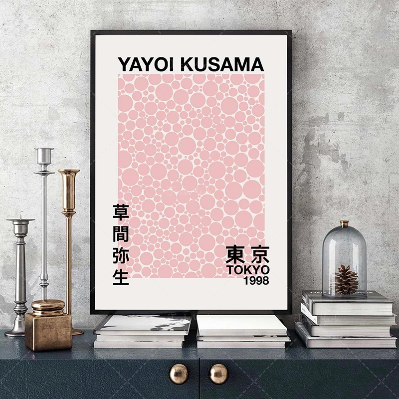 Постер Yayoi Kusama, печать Yayoi Kusama, выставочный постер Yayoi Kusama, японское искусство, бесконечные сети, розовое мотивное искусство