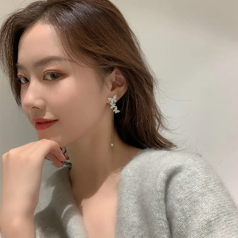 Серьги-бабочки в южнокорейском стиле с длинными кисточками и красными красивые серьги