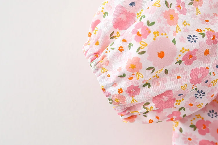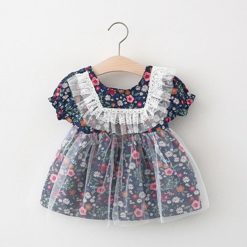 Летняя одежда для новорожденных девочек; Кружевное платье с цветочным принтом; Костюм для девочек; Одежда для малышей; Праздничное платье принцессы на 1 год