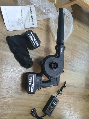 Заказ добрался за 34 дня. Упаковано отлично, коробка просто в хлам, но все относительно целое. У одного АКБ трещина на корпусе. Описанию соответствует. Неплохая воздуходувка, продуть технику, сдуть снег, пыль, пошугать домашних)) На всасывание не испытывали, да и пылесосить "боком" не очень удобно. Но можно захимичить какой-нибудь шланг) Брал с 2 АКБ. Инструкция не пригодится. Резиновая насадка с сильным запахом. Выветривается. Зарядное дешовое и очень лёгкое. В целом замечаний нет и кажется довольно не плохим вариантом за эти деньги.