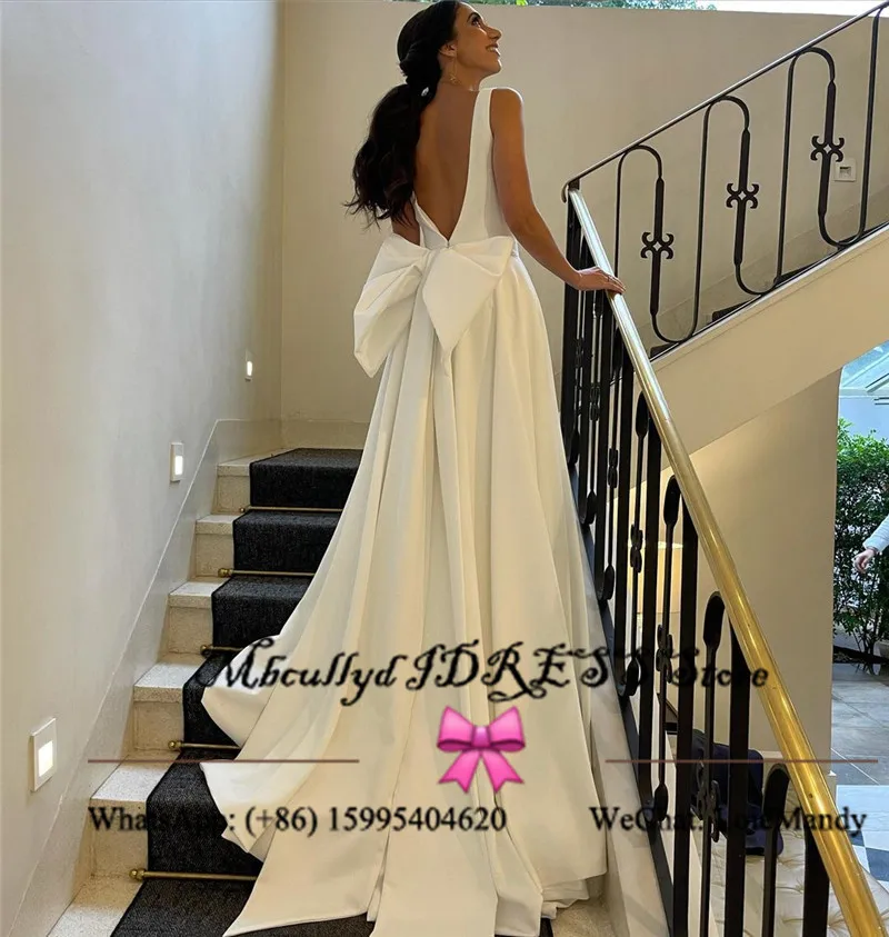Очаровательное белое атласное свадебное платье для беременных женщин 2021 с открытой спиной в викторианском стиле платье с бантом Формальное Vestido de mujer