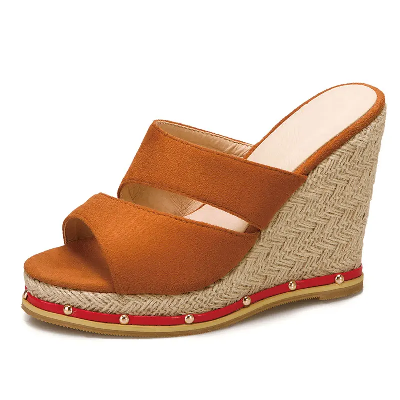 Sgesvier/2021 г.; Модные слипоны на соломенной платформе; Высокое качество; Летние женские туфли на танкетке и высоком каблуке; Босоножки без задника; Большие размеры 50; Шлепанцы