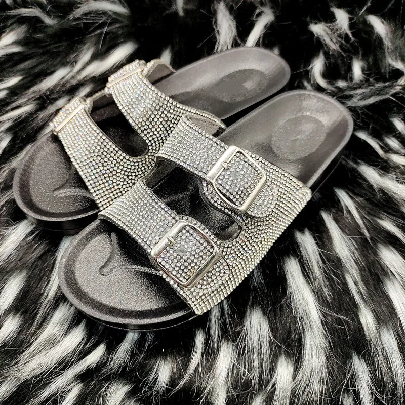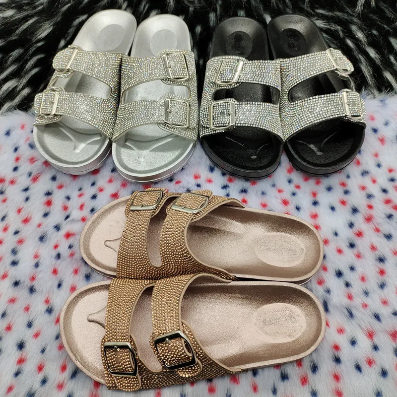 Шлепанцы Стразы золотистые женские летние шлепанцы с двумя ремешками Большие размеры 37-42 Босоножки женская обувь