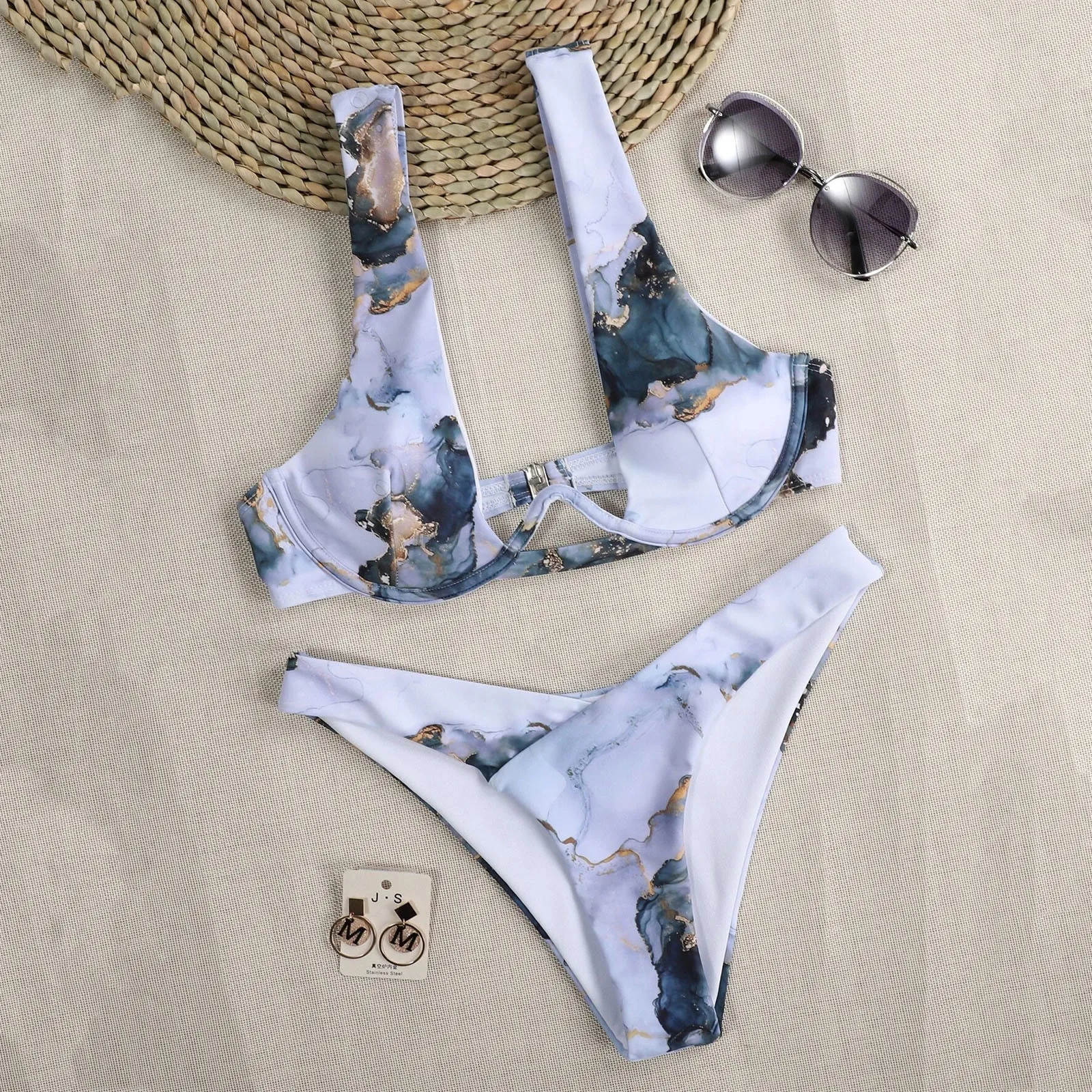Новинка 2021, спортивный бандо с принтом, бикини с пуш-ап, сексуальный женский купальник с мраморным узором, купальник с высокой талией, женский купальный костюм, пляжная одежда купальники женские 2021