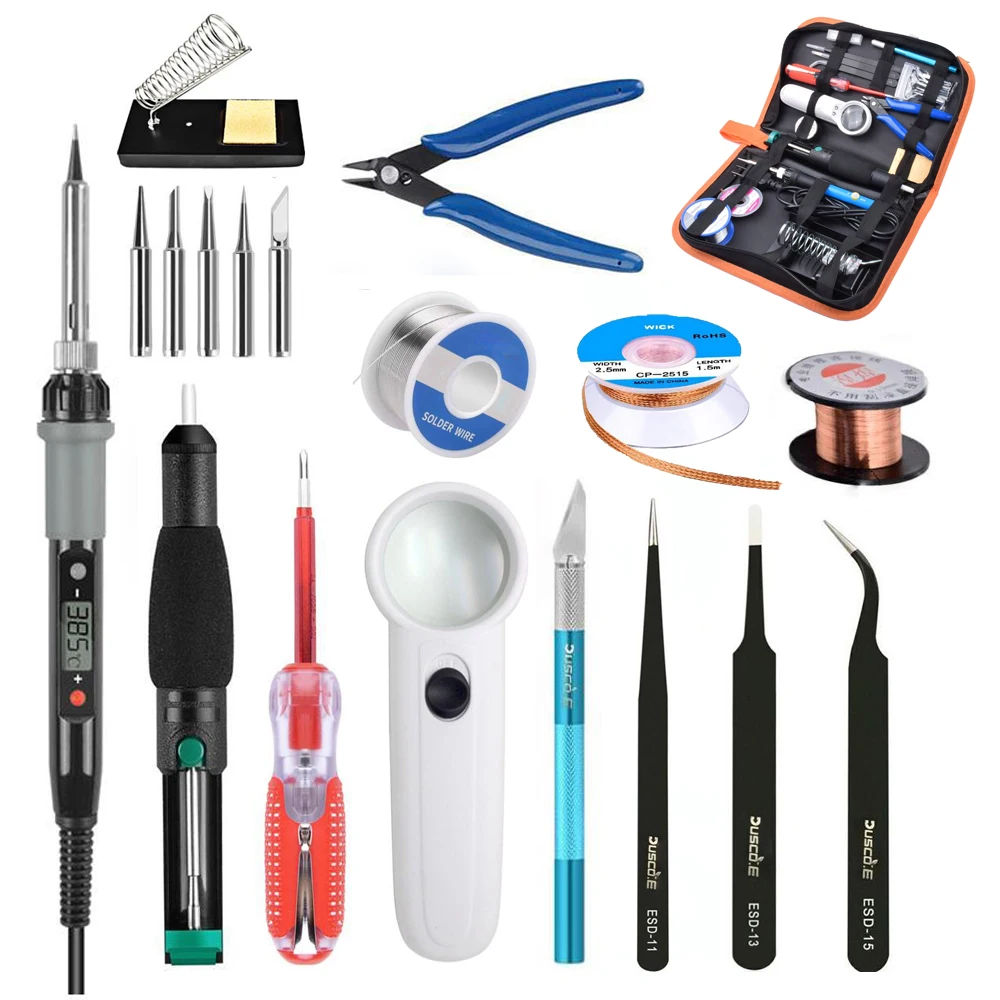Паяльные инструменты широко используются для плата сварочной цепи, ремонта приборов, домашних любителей, сварки ювелирных изделий. Вы можете взять его с собой куда угодно и сможете найти необходимые вам инструменты в сумке для переноски. Мощность изделия: 80 Вт Регулировка температуры: 180-480 ℃ Нагревательный элемент: профессиональный керамический сердечник PCB Длина утюга: около 235 мм Длина шнура питания: около 1,3 см