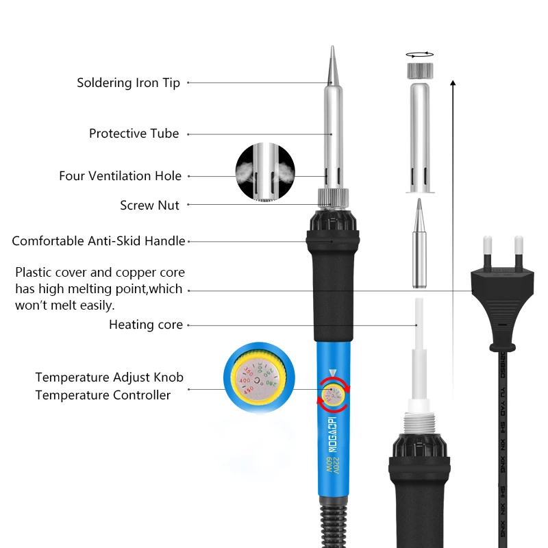 Поскольку набора много, пожалуйста, внимательно прочитайте и выберите разместить заказ. Если у вас есть какие-либо вопросы, оставьте сообщение. Набор паяльника, мощность черная 80Вт/серый, синий 60Вт. ➥ Примечание: штепсельная вилка стандарта США-110 В. Вилка стандарта Великобритании/ЕС составляет 220 В.