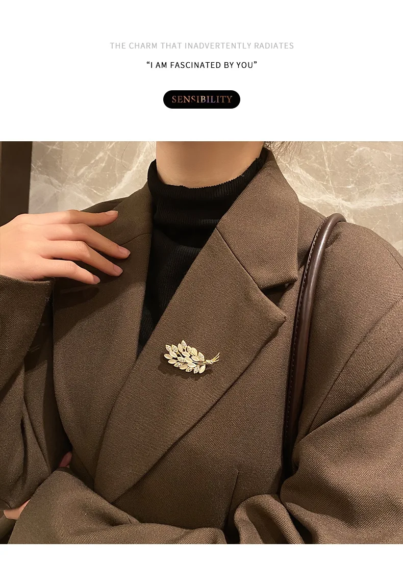 Роскошная золотая брошь кошачий глаз в форме пшеничного шипа, корейская мода, Ювелирное Украшение, брошь на пуговицах для костюма Вечерние