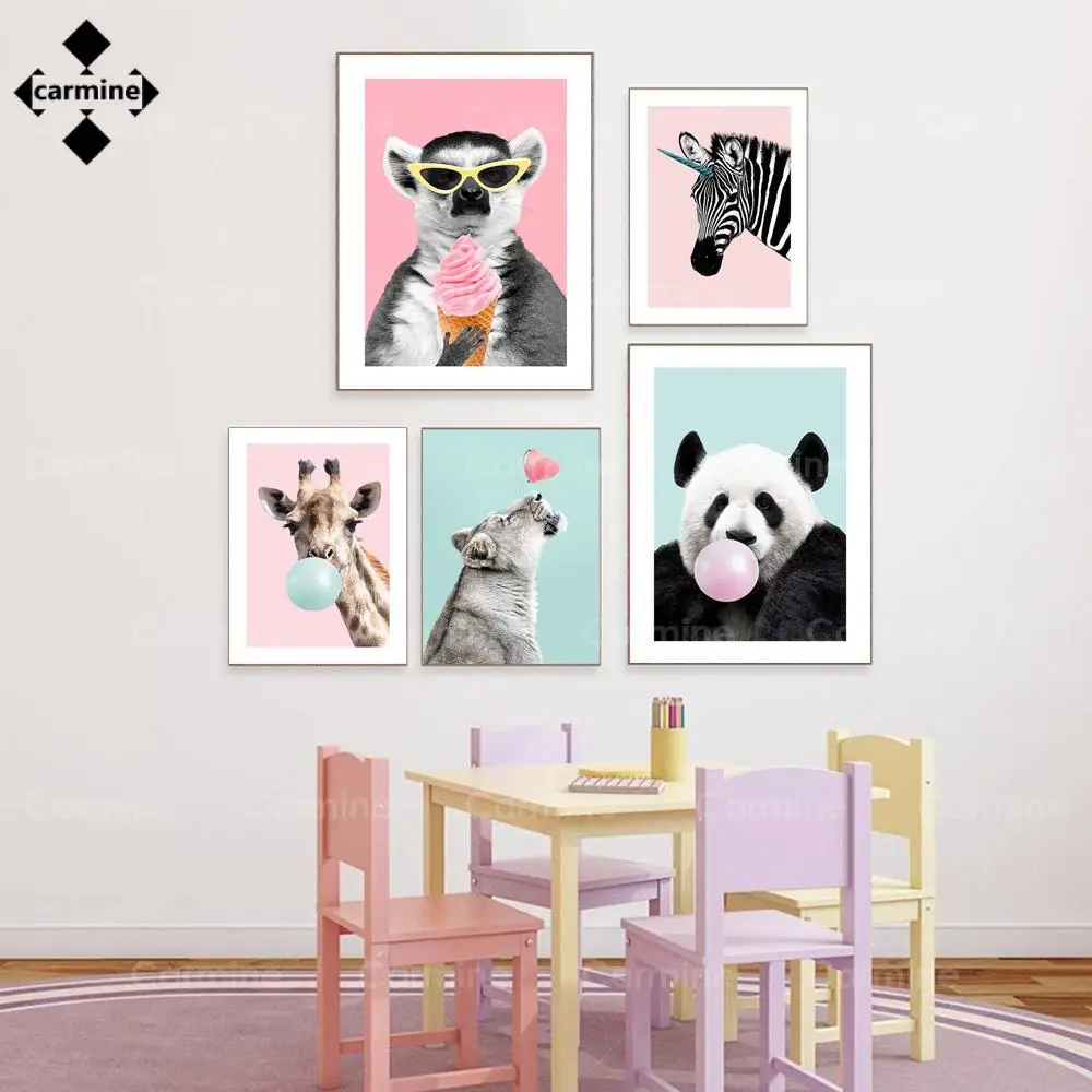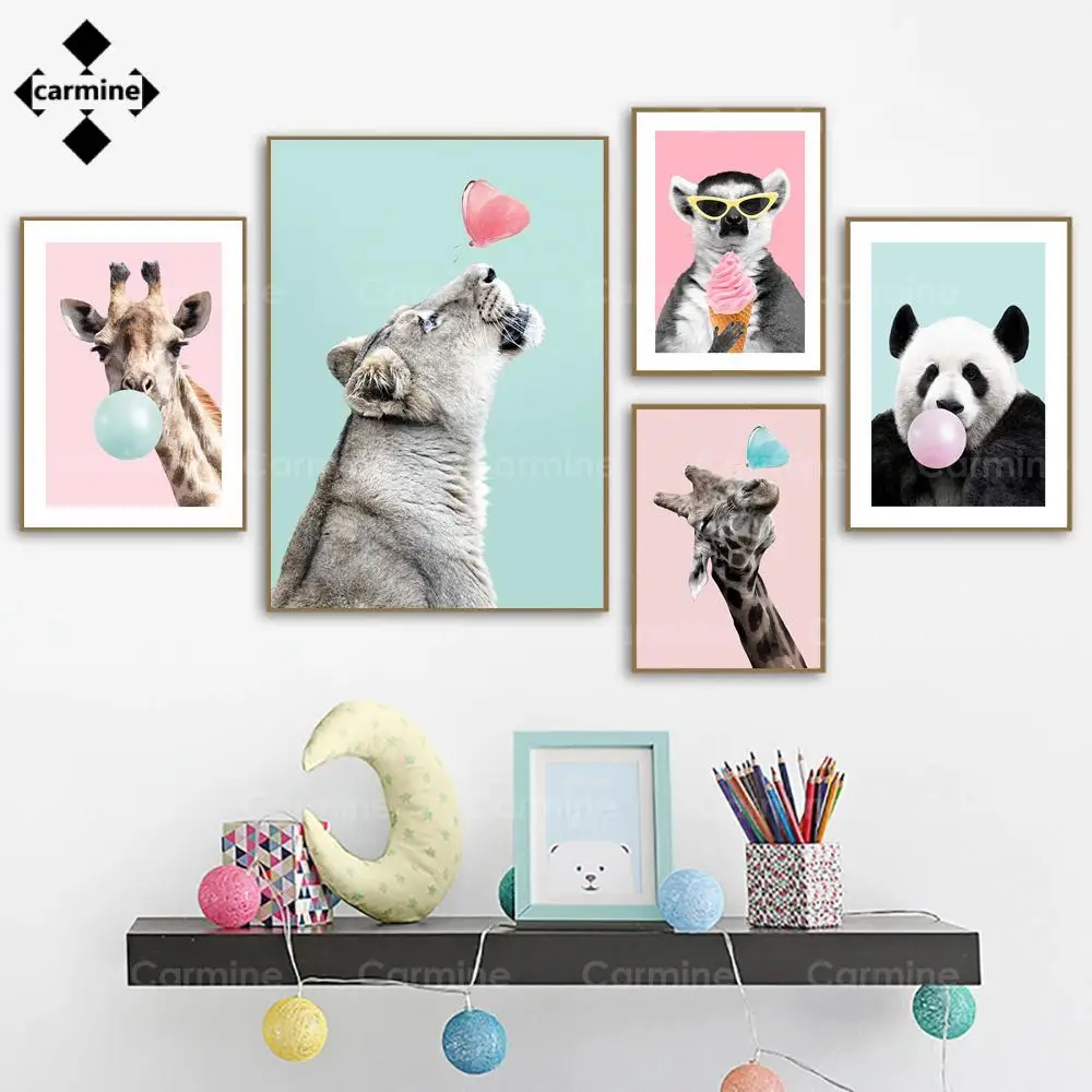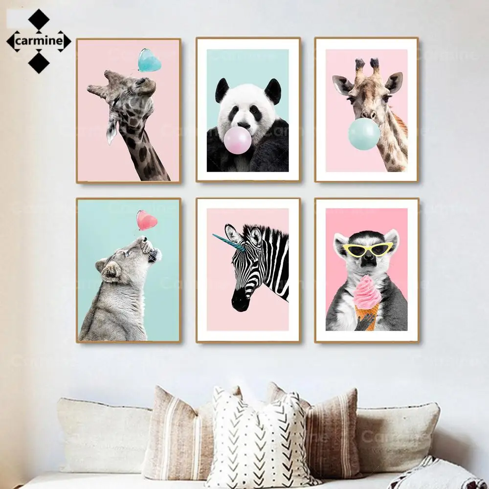 Настенная картина для детской комнаты с изображением животных, жирафа, панды