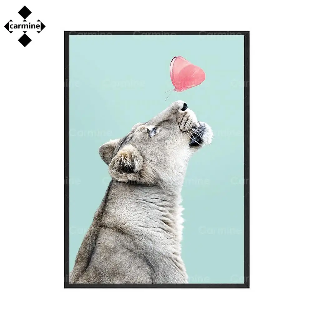 Сафари животные холст постер милый Лев Львица львица Cub печать чер...