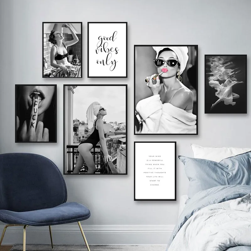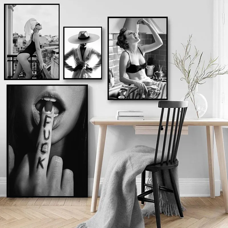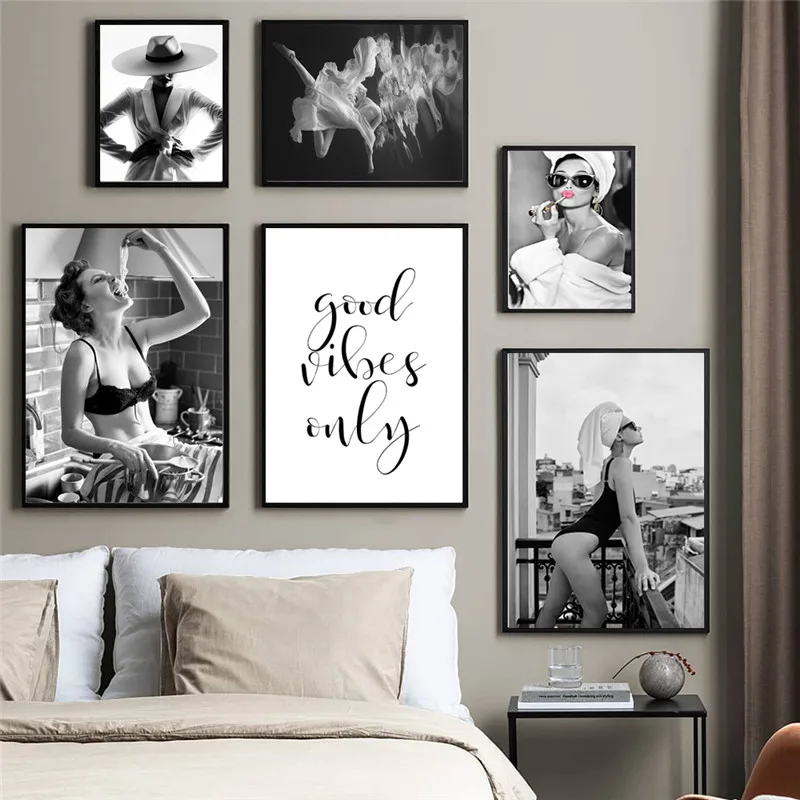 Плакат для фотосъемки, черный, белый, домашний декор, настенная живопись на холсте, модная женская фигурка, принт для Нордического общежития, картина HD0093